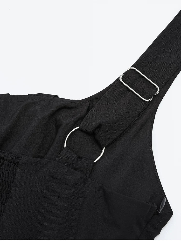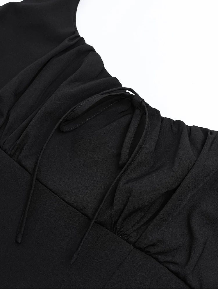 Elegant Summer Midi Dress Square Neck Sleeveless Backless Pleated A-line Dress