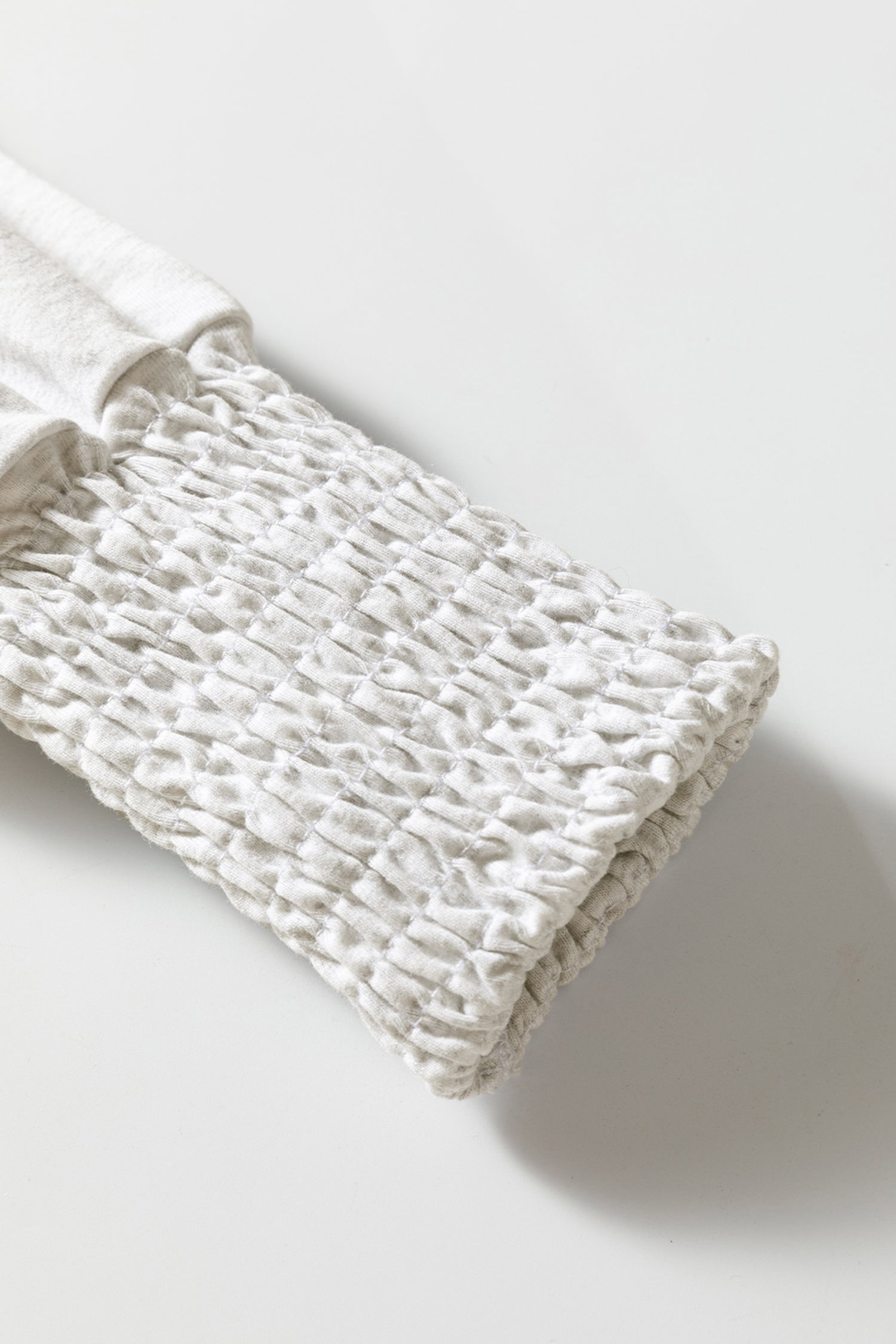 Shirred Cuffs Puff Sleeve Peasant Top - Oatmeal