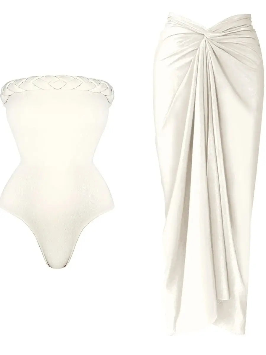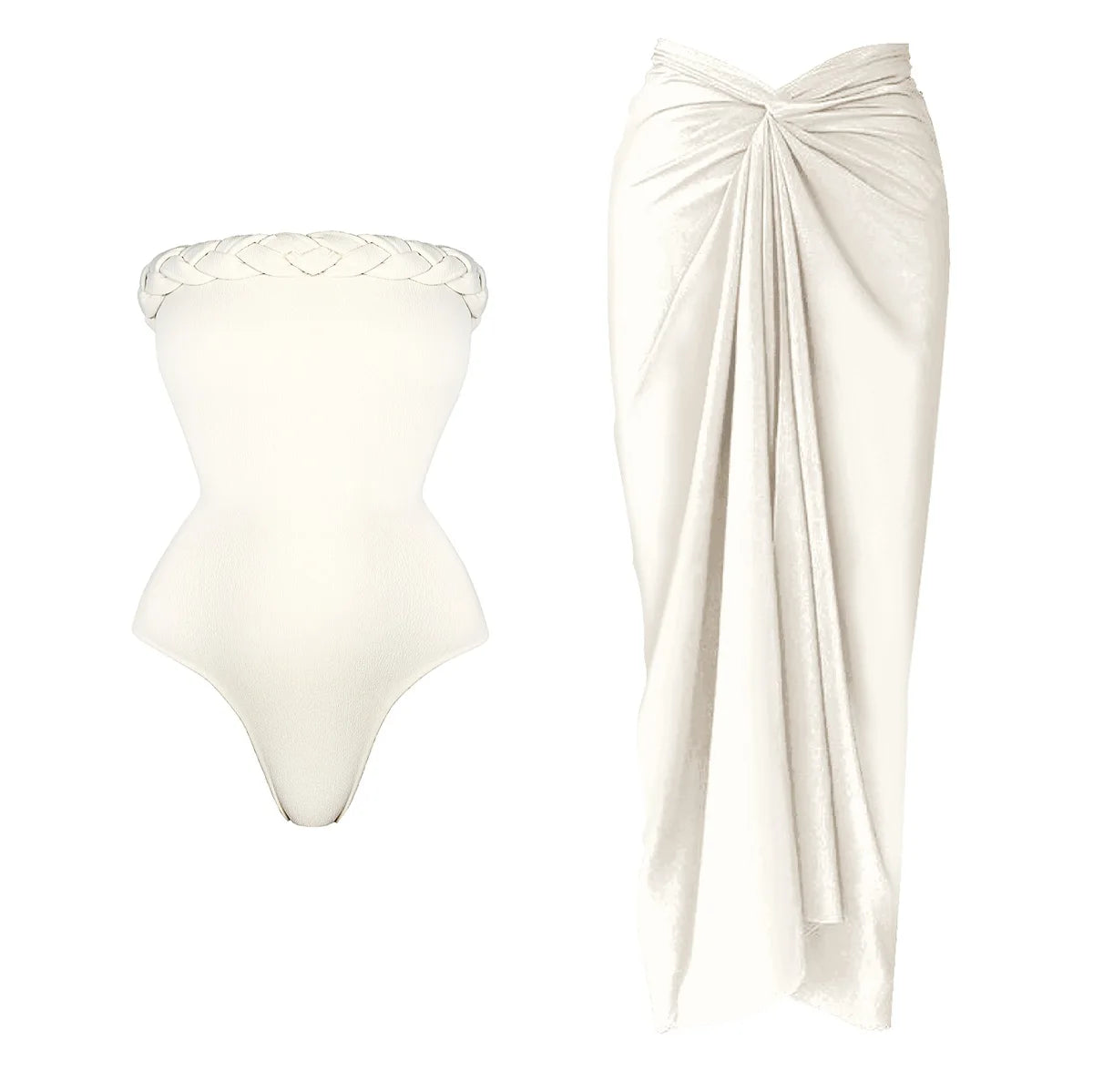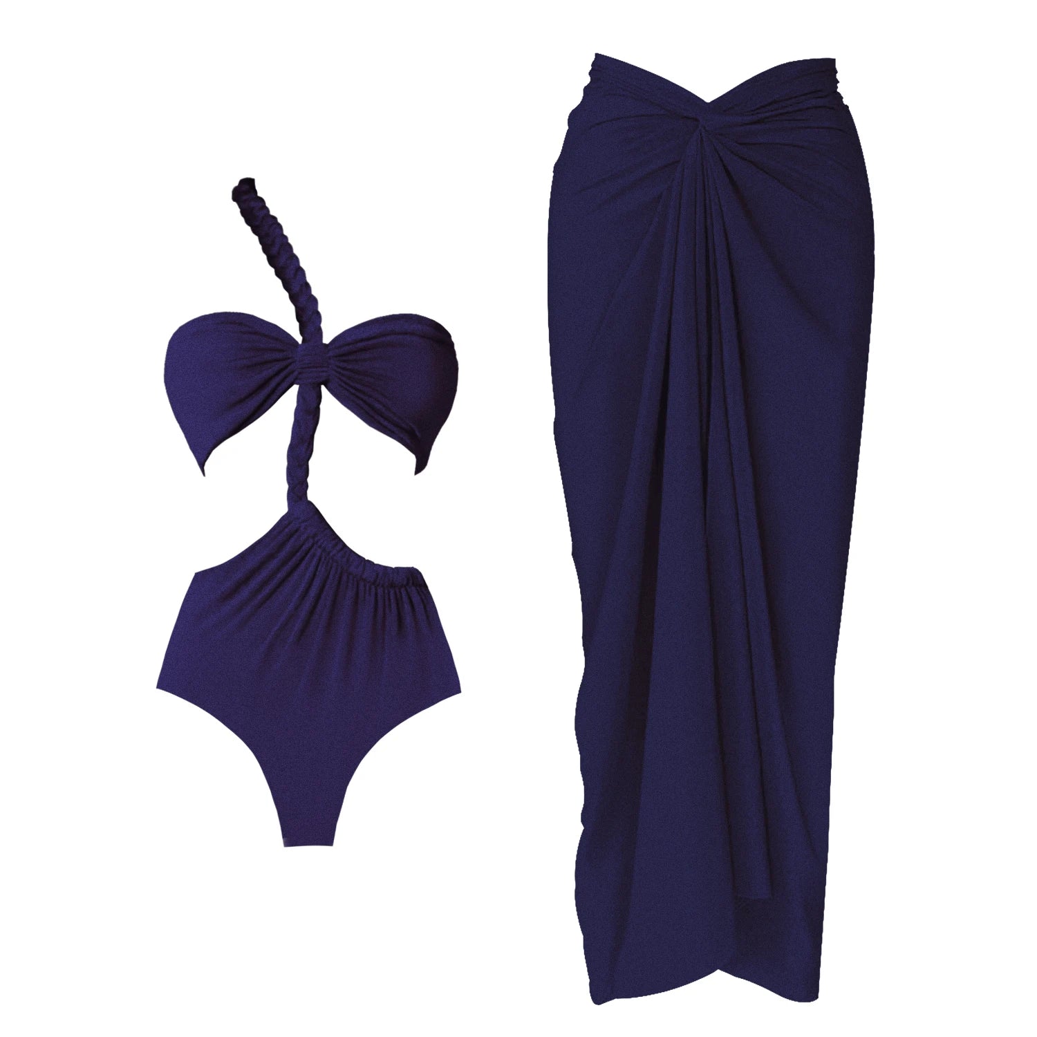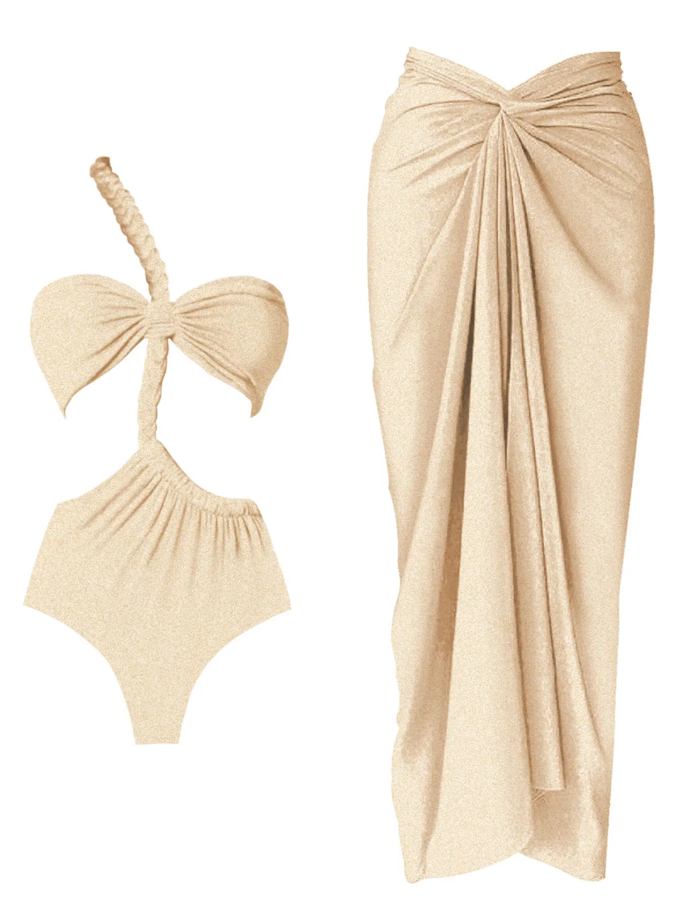 Women's One Shoulder Swimwear with Skirt Summer Ruched Cover Up Elegant Maxi Dress
