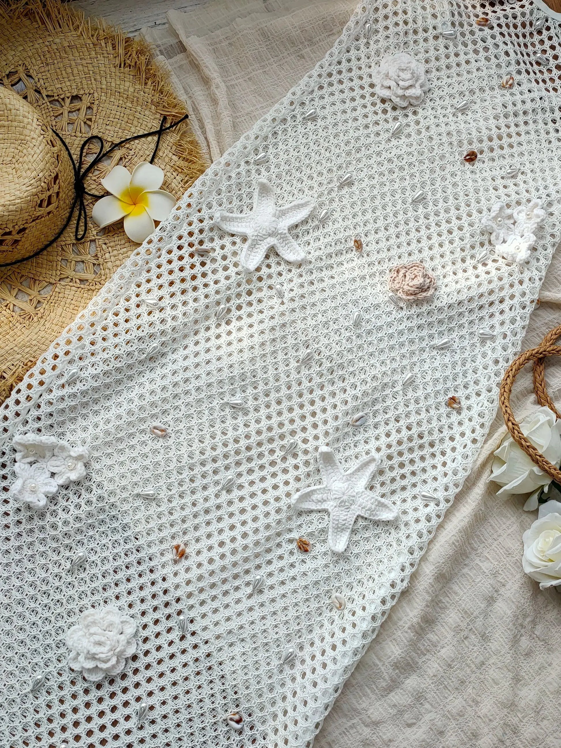 Women's Summer Pearl Crochet Dress knitting Sleeveless Halter Lace Up Patchwork Long Dress