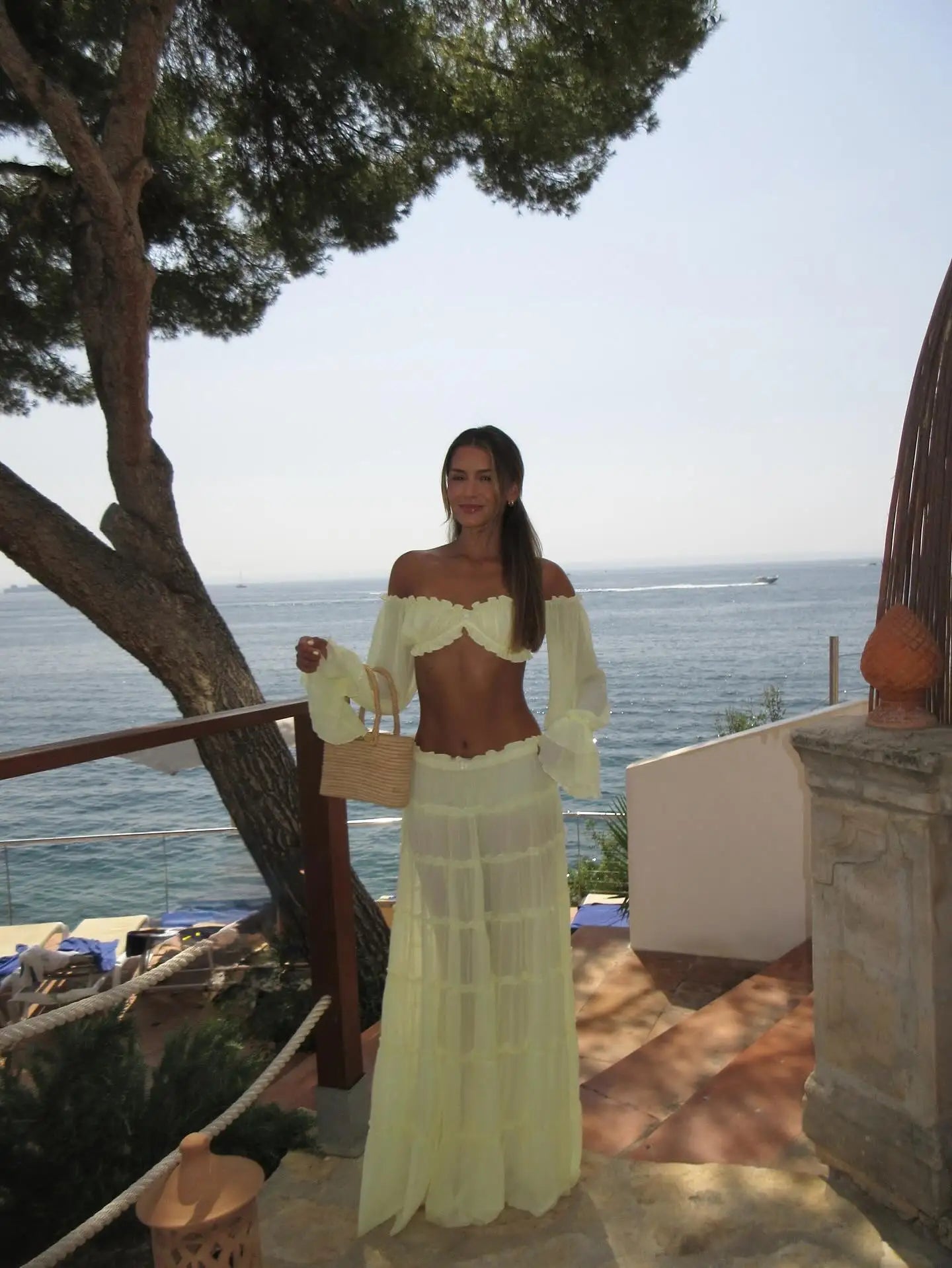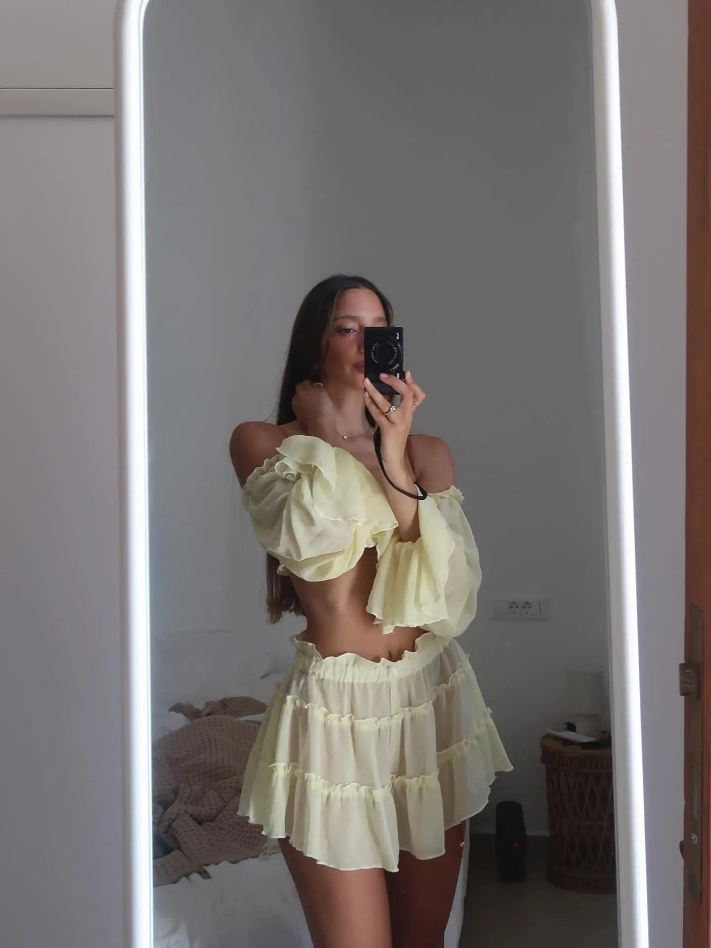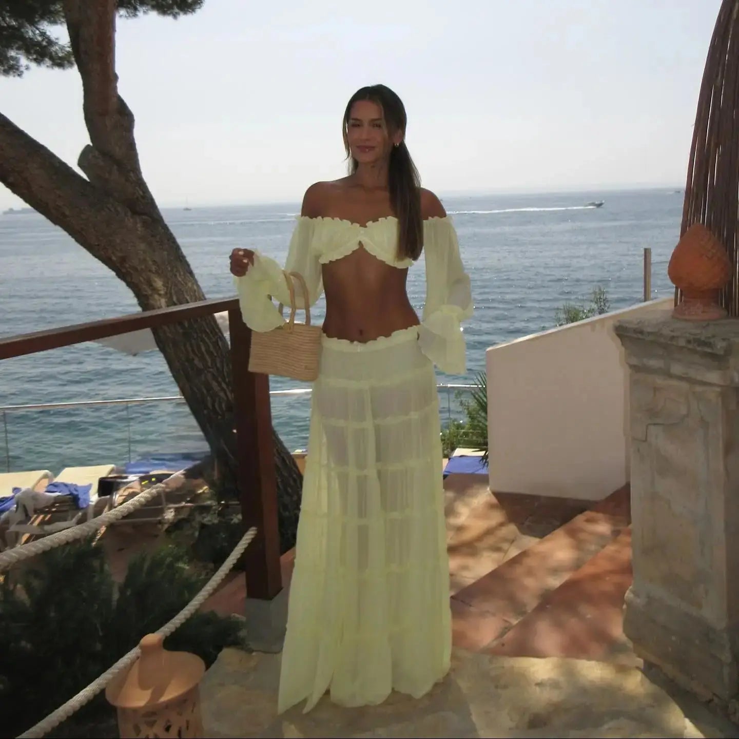 Elevate your beach style with this elegant ruffle beach cover up dress. Featuring long sleeves and a flattering high waist design with bandage detailing, this versatile beachwear piece is perfect for summer beach days, poolside lounging, and vacation getaways. The beautiful ruffle accents add feminine charm to your beach look.