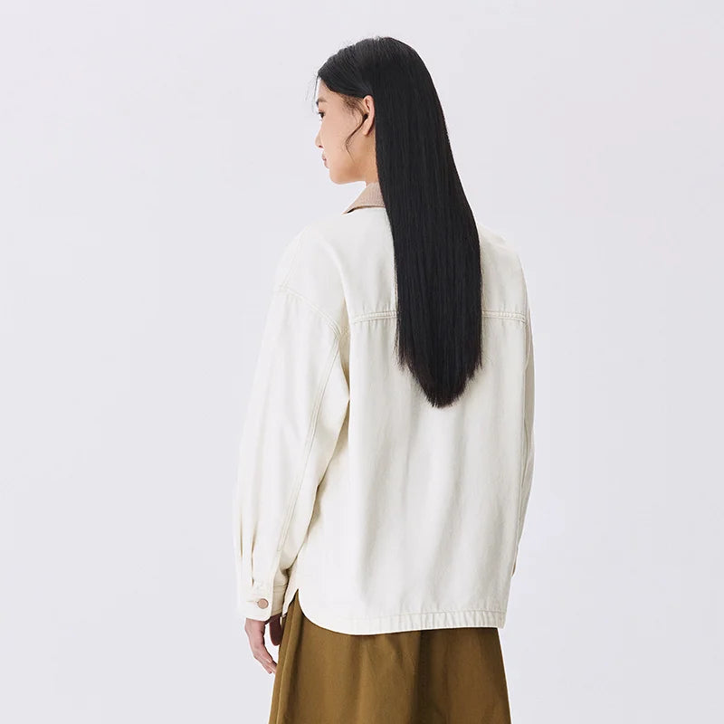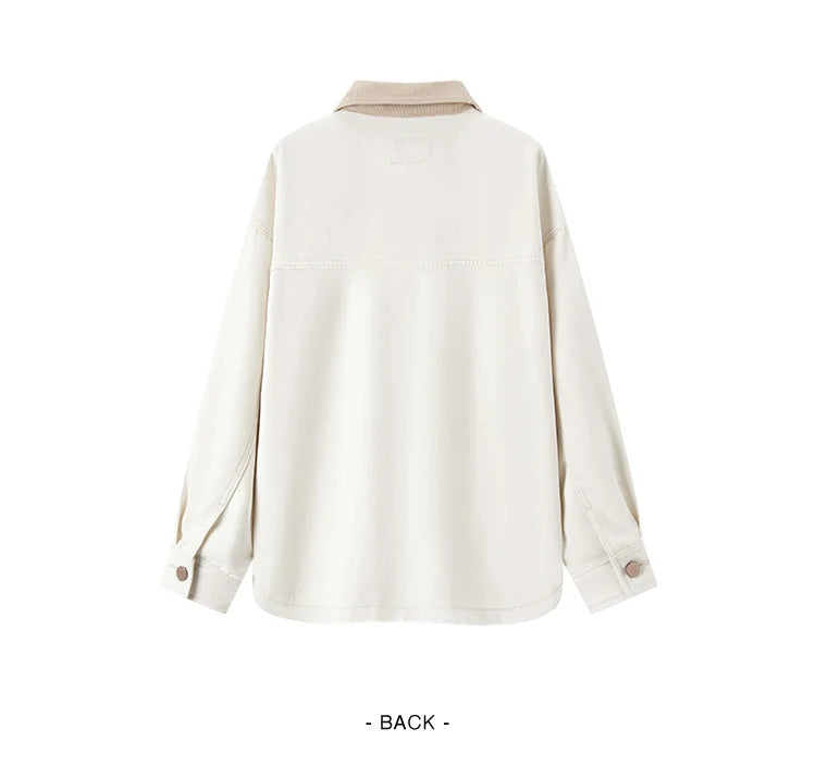 Corduroy Denim Jacket - Women's Turn Collar Loose Casual Coat