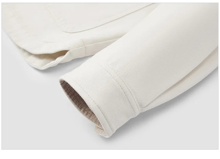 Add a touch of texture to your autumn wardrobe with this stylish corduroy denim jacket. Featuring a classic turn collar and relaxed loose fit, this versatile coat effortlessly combines casual comfort with timeless style.