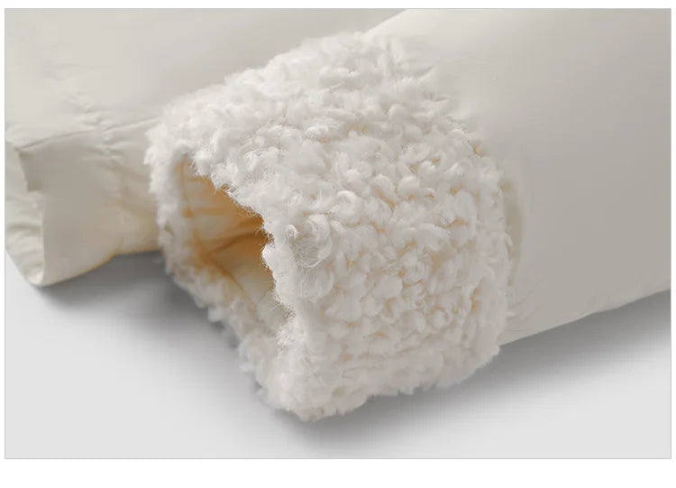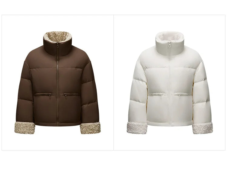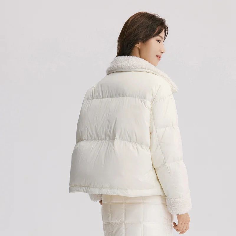 Indulge in the perfect combination of luxurious lamb wool texture, premium down warmth, and sophisticated design details that make this jacket an essential addition to your winter wardrobe.