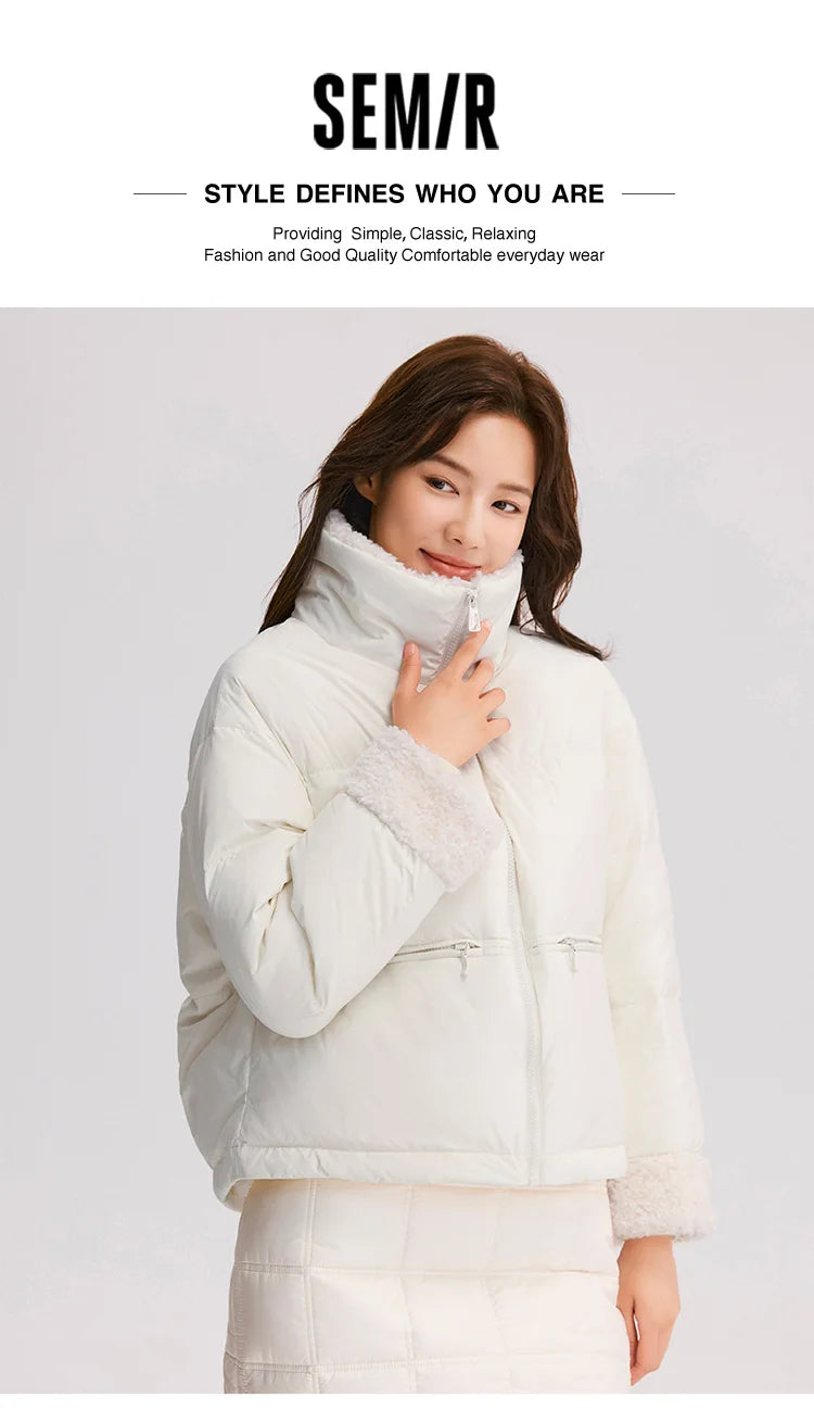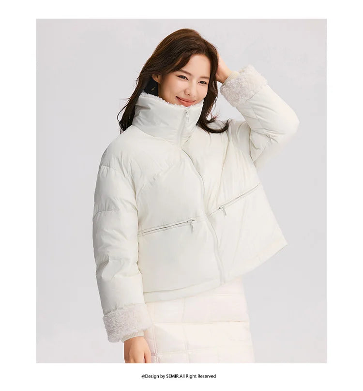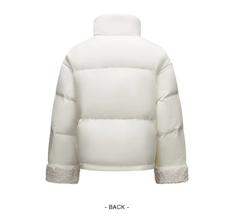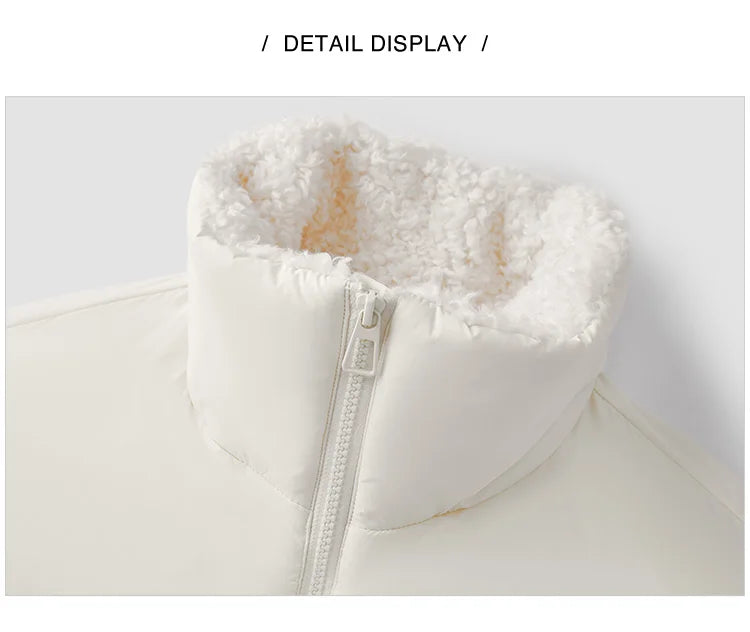 Down Jacket Women Loose Solid Color Winter Patchwork Imitation Lamb Wool Stand-Up Collar Textured