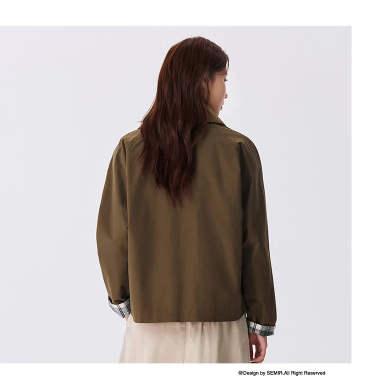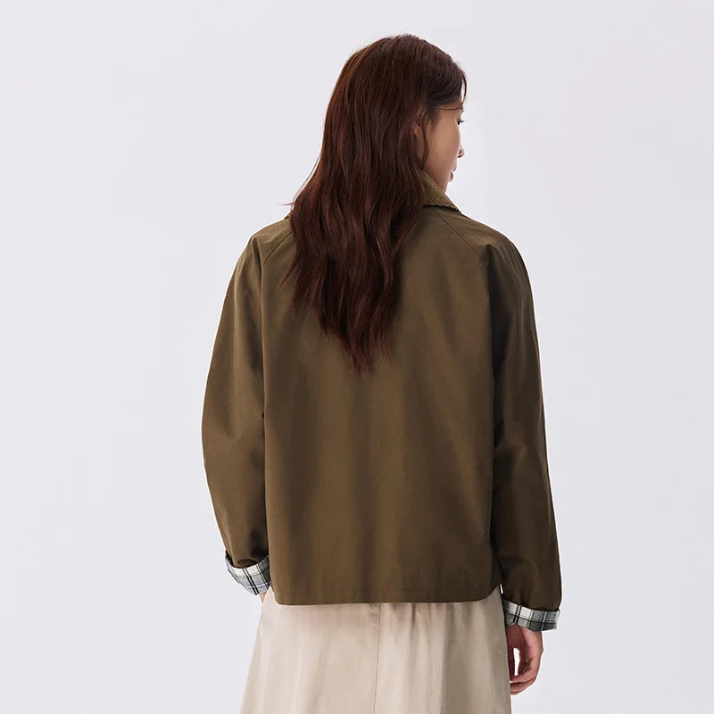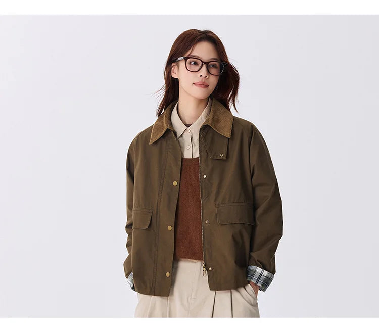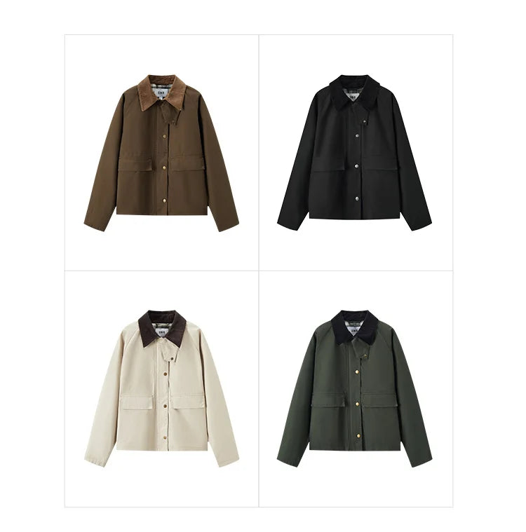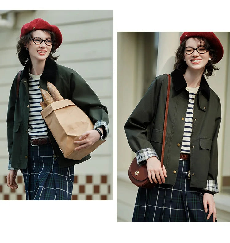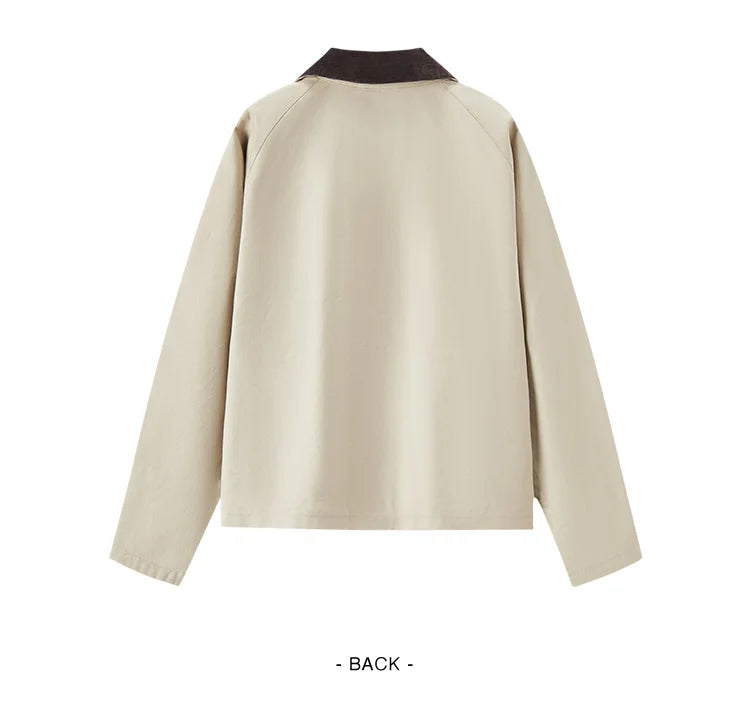 Women's Raglan Sleeve Patchwork Jacket - Loose Fit Retro Chic Autumn Coat
