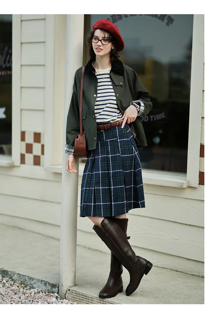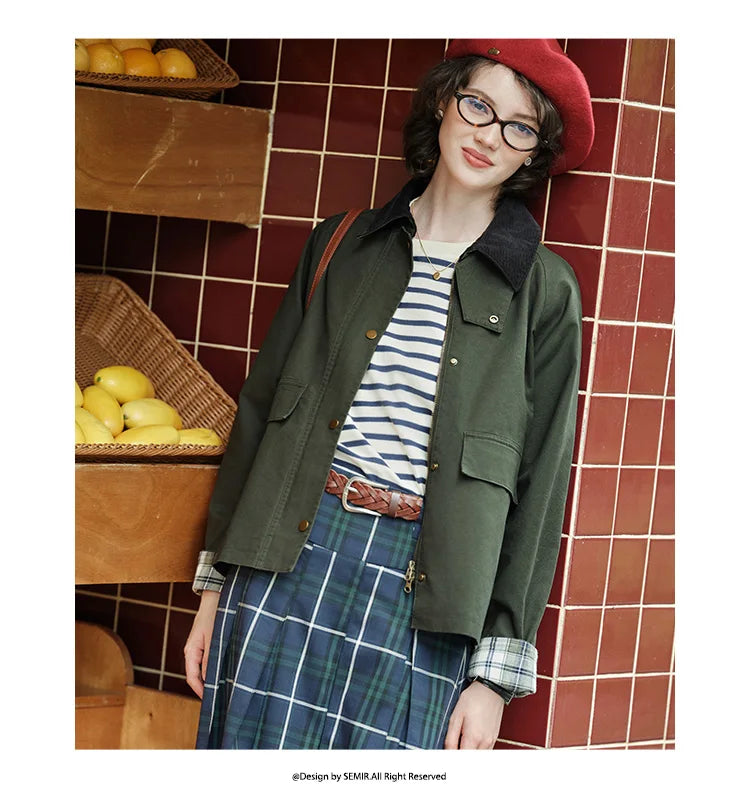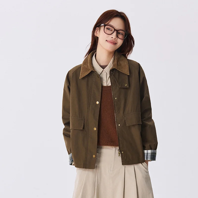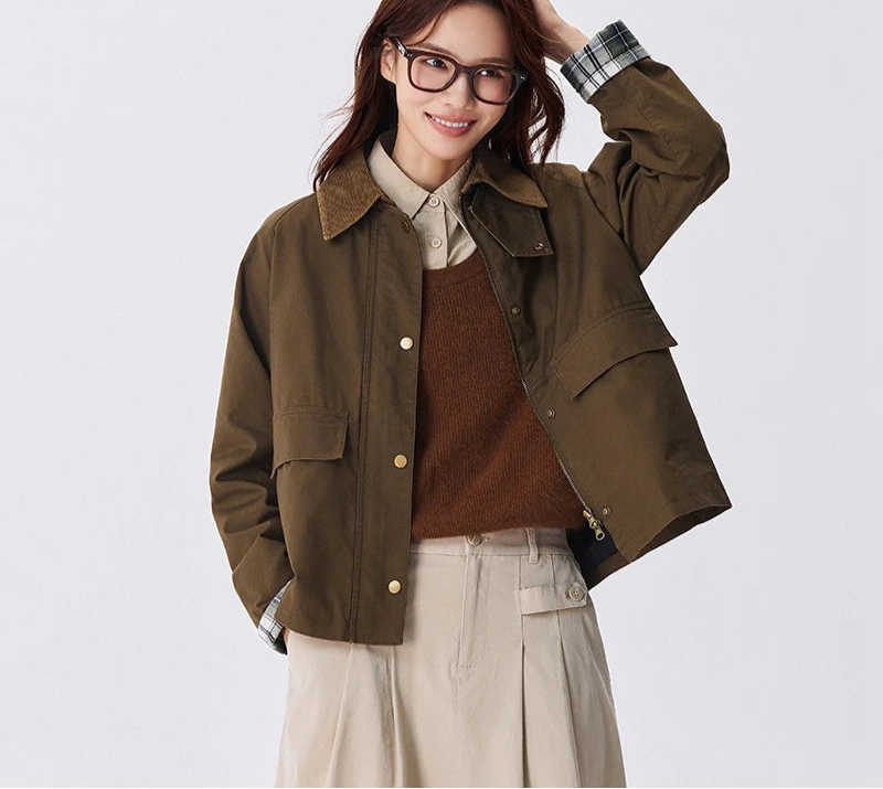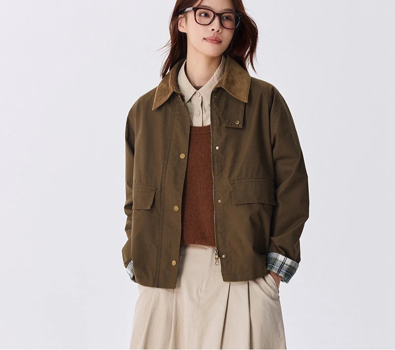 Women's Raglan Sleeve Patchwork Jacket - Loose Fit Retro Chic Autumn Coat