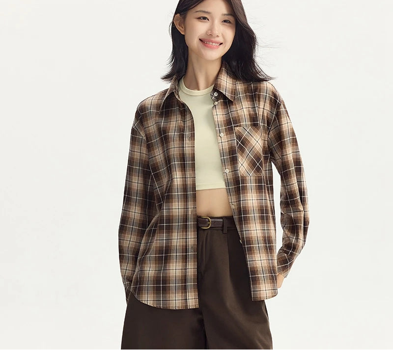 Oversized Drop Shoulder Plaid Shirt Loose Retro Casual Stylish Top