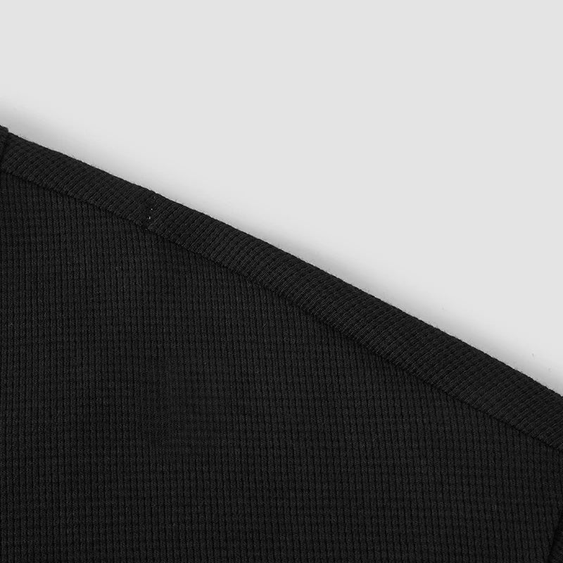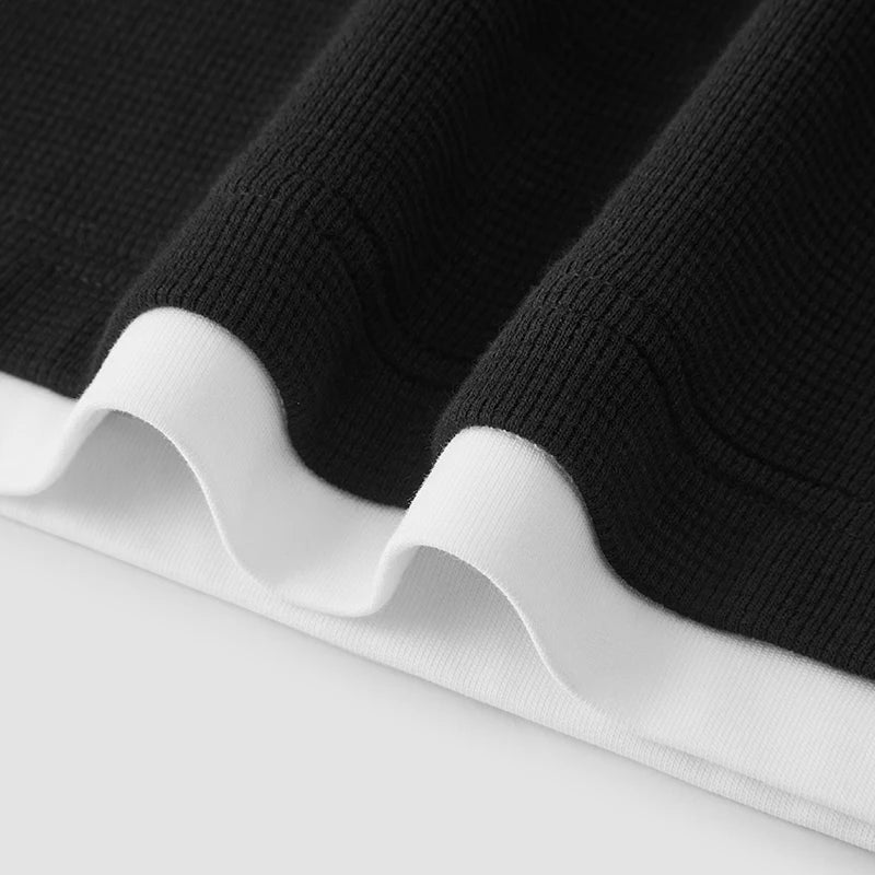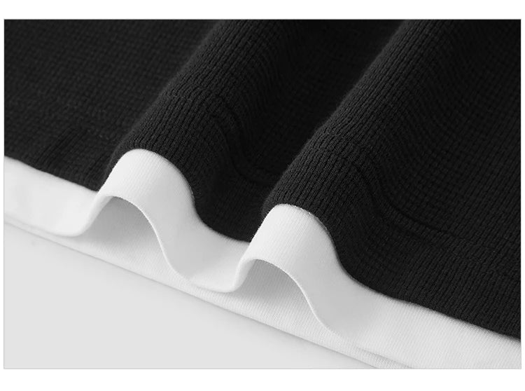 Elevate your casual streetwear with this distinctive long sleeve t-shirt. Featuring a modern colorblock design with a layered look and unique waffle texture, this loose-fit top brings contemporary style to your everyday wardrobe.
