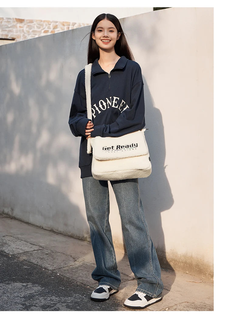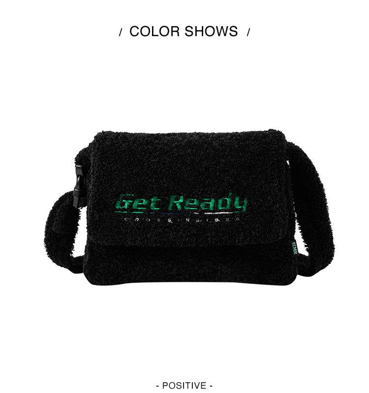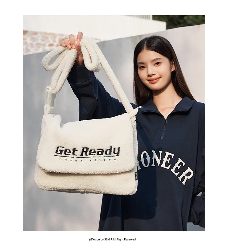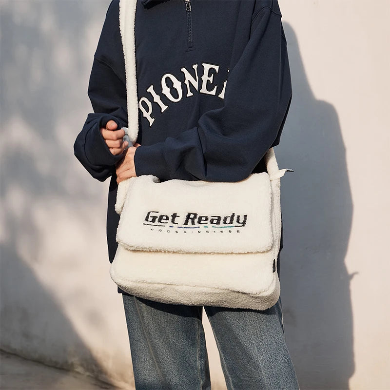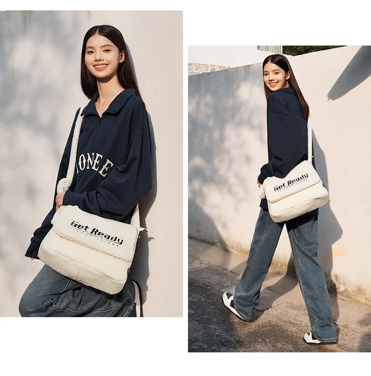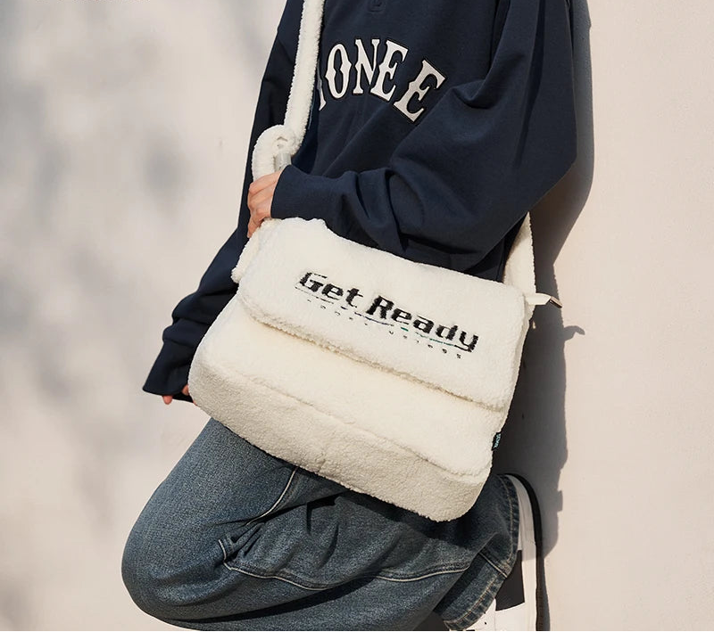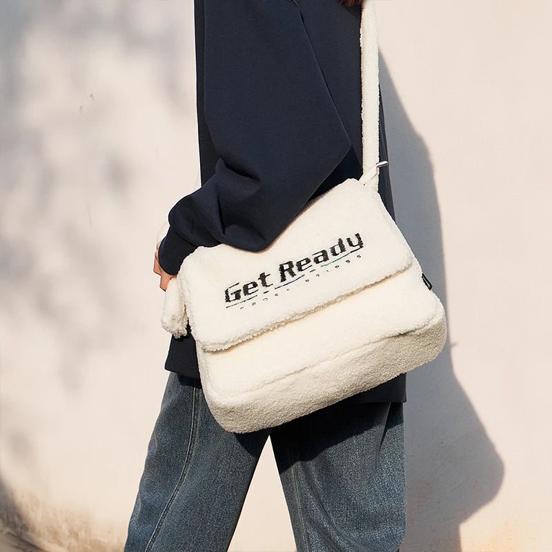 Sherpa Faux Lamb Wool Messenger Bag - Large Capacity Crossbody Shoulder Bag