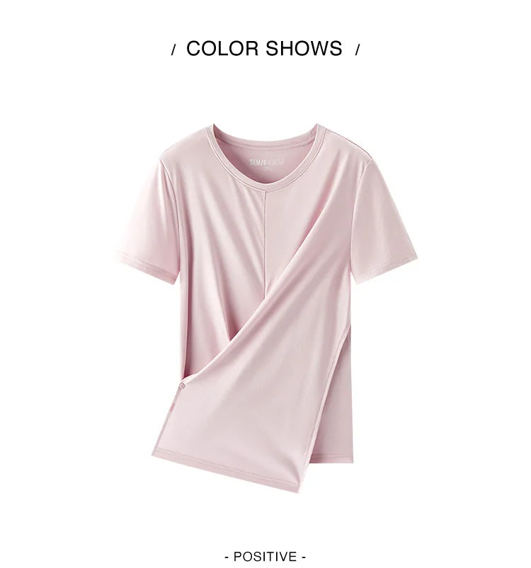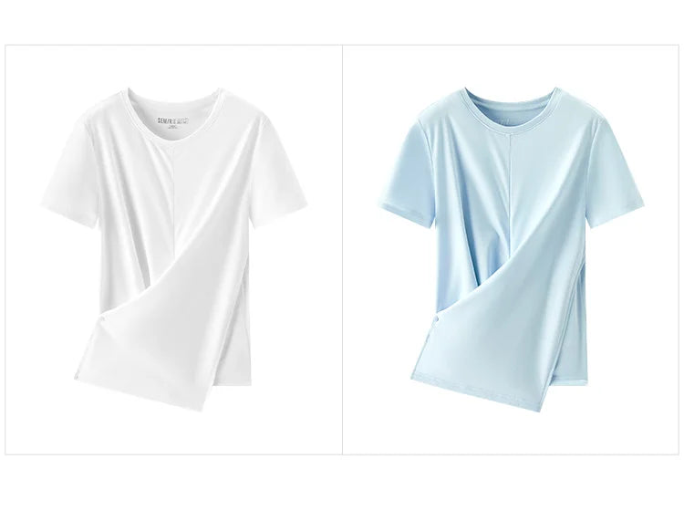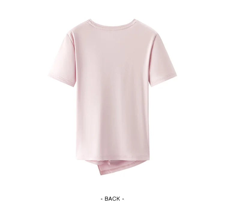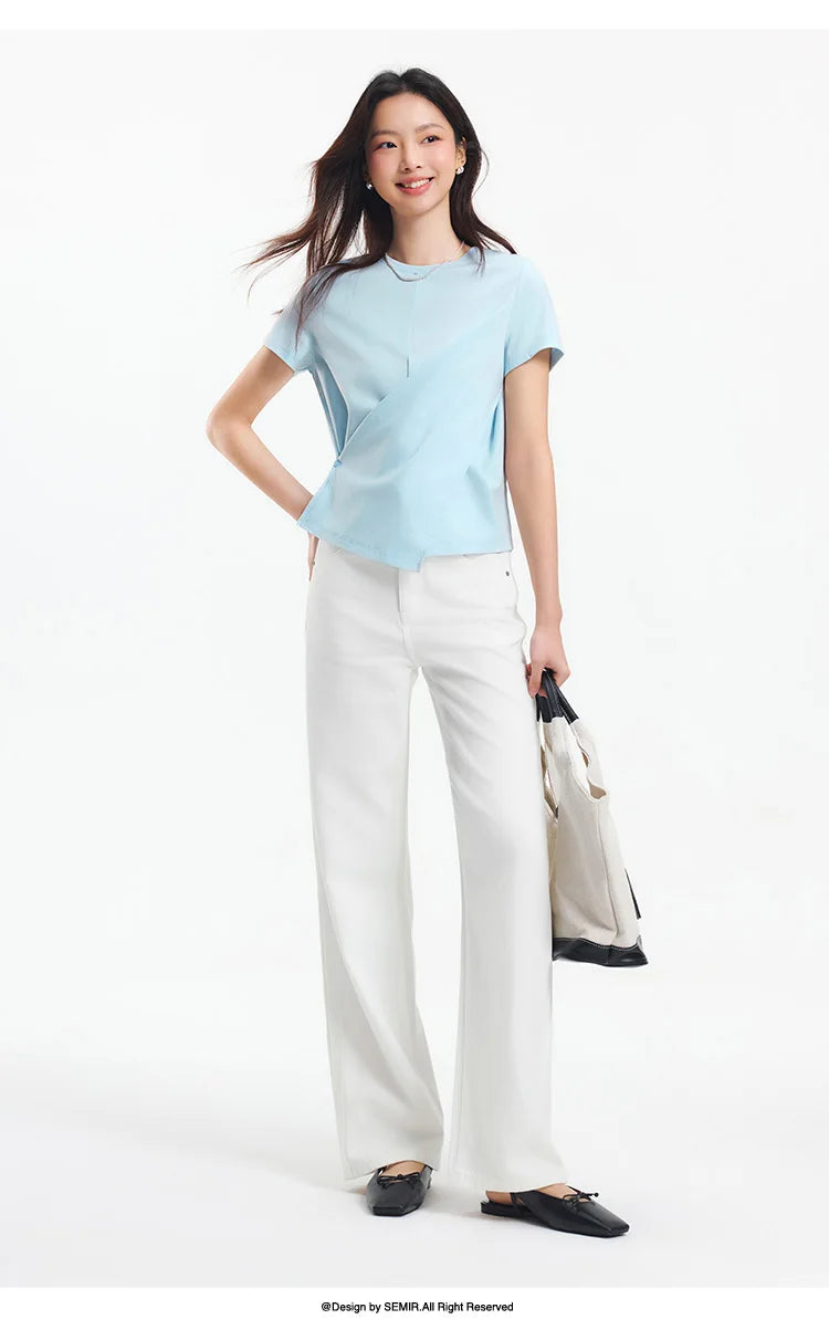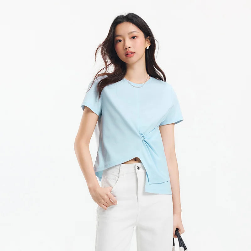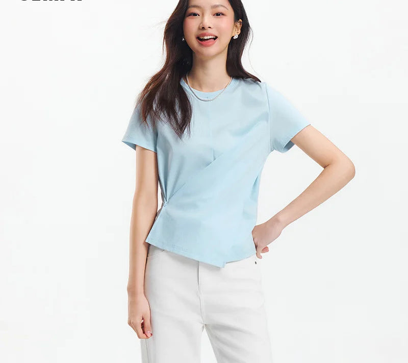Discover the perfect balance of casual comfort and chic style with this cropped cotton t-shirt. Featuring a unique split hem design and relaxed fit, this versatile summer top effortlessly transitions from laid-back days to stylish evenings.
