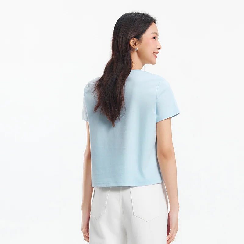 Imagine slipping into this beautifully soft cotton tee on a warm summer morning - the relaxed fit skims your body comfortably whilst the cropped length creates a perfectly proportioned silhouette. The subtle split hem adds a touch of sophistication that elevates your look, whether you're pairing it with your favourite jeans for a coffee date or high-waisted trousers for an evening out.