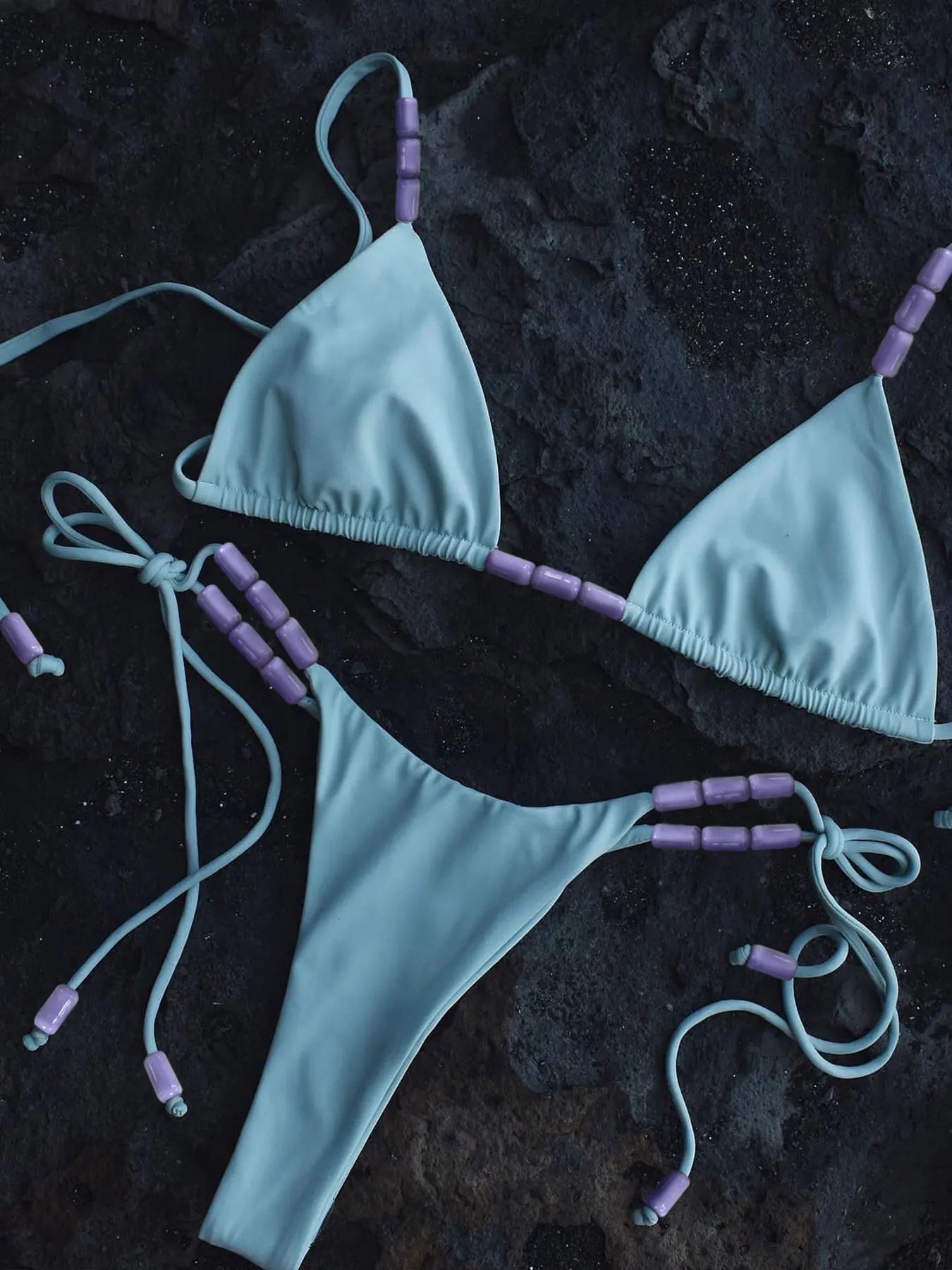 Women's Deep V-Cut Halter Bikini - Beaded Thin Strap Swimwear