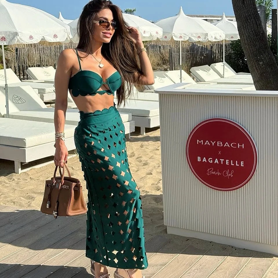 Turn heads at the beach with this stunning underwire bikini set with ruffle skirt. Featuring supportive underwire construction, flattering push-up design, and a feminine ruffled skirt, this three-piece set offers the perfect combination of style, support, and coverage for confident beach days.