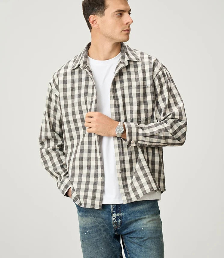 Oversized Linen Cotton Plaid Shirt - Casual Relaxed Fit