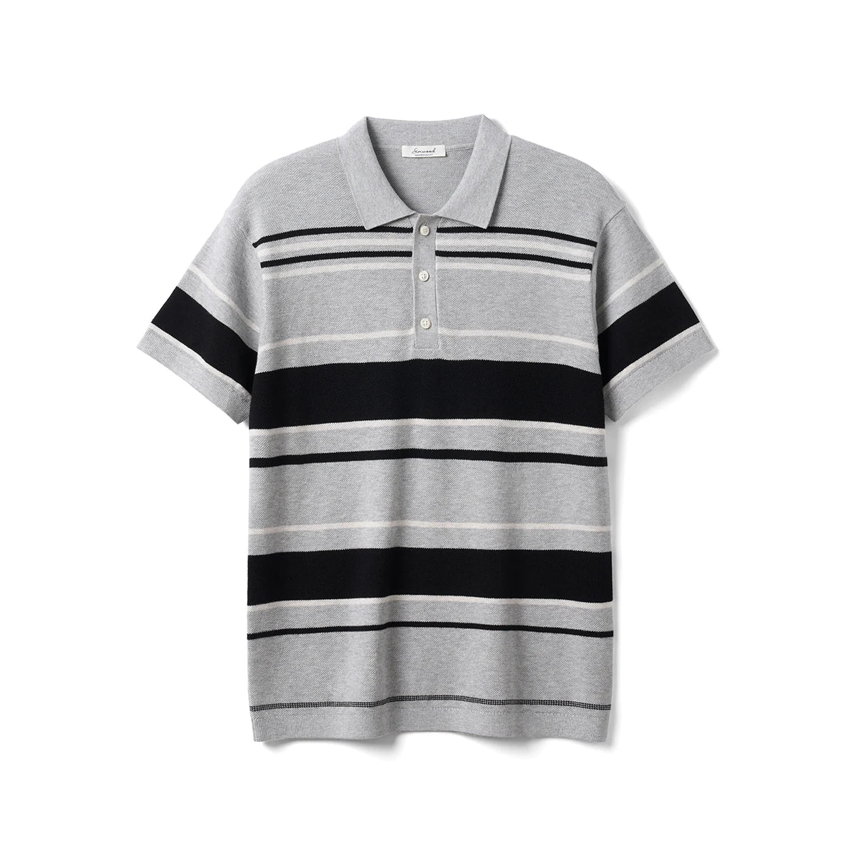 Men's Oversized Soft Knitted Polo Shirt - Striped Design Plus Size