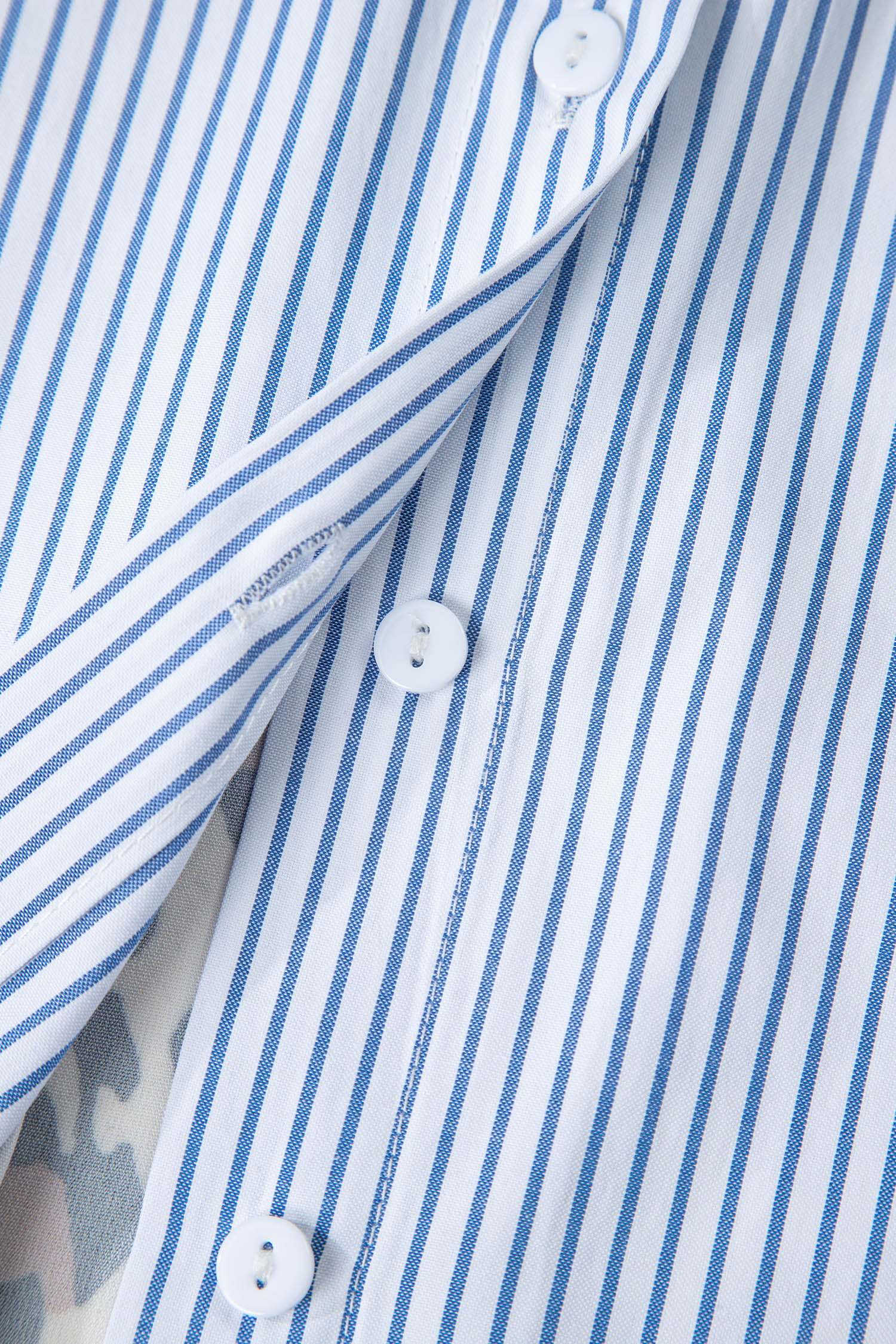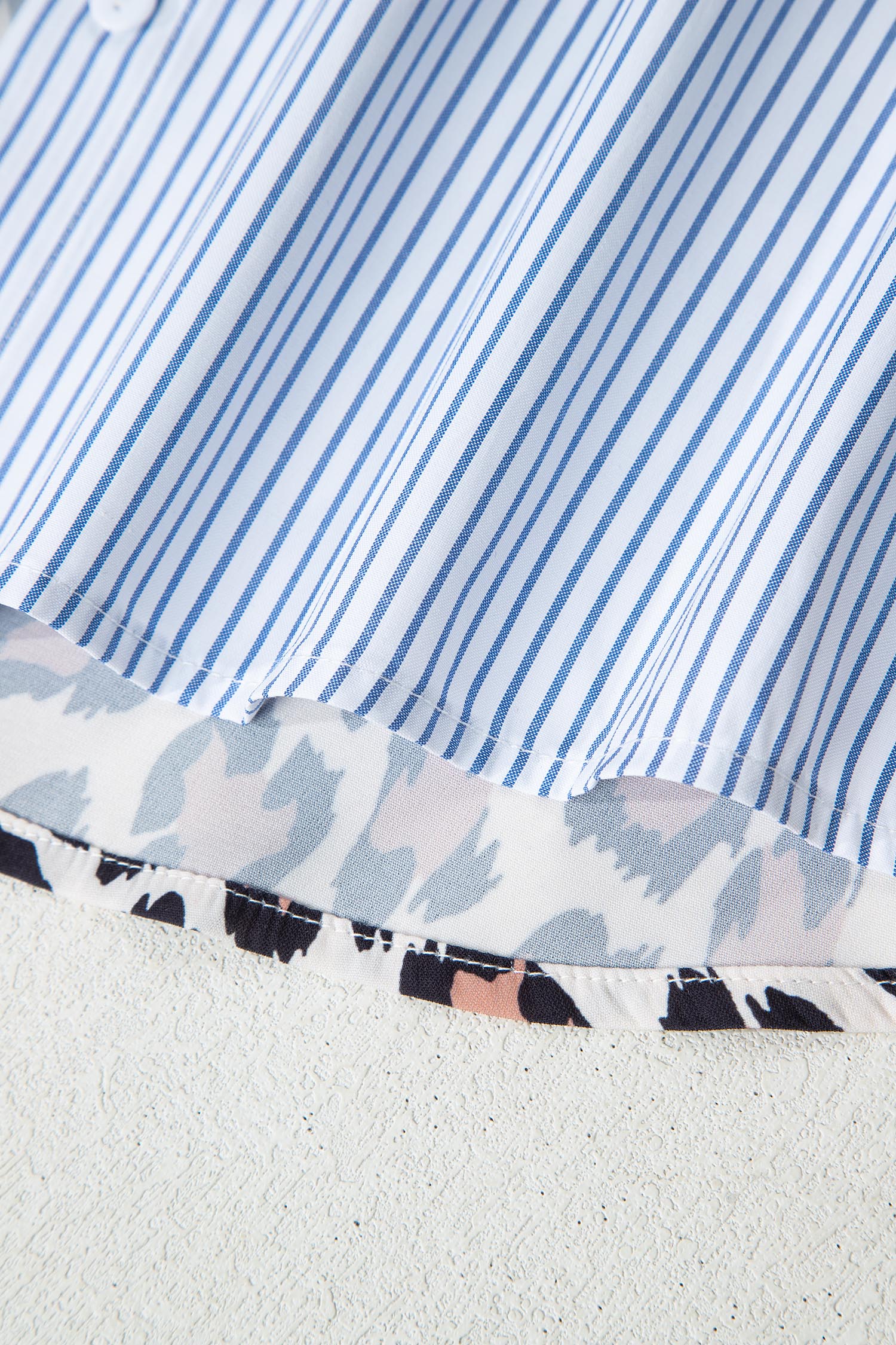 Stripe Colorblock Leopard Patchwork Chest Pocket Cuffed Sleeve Shirt