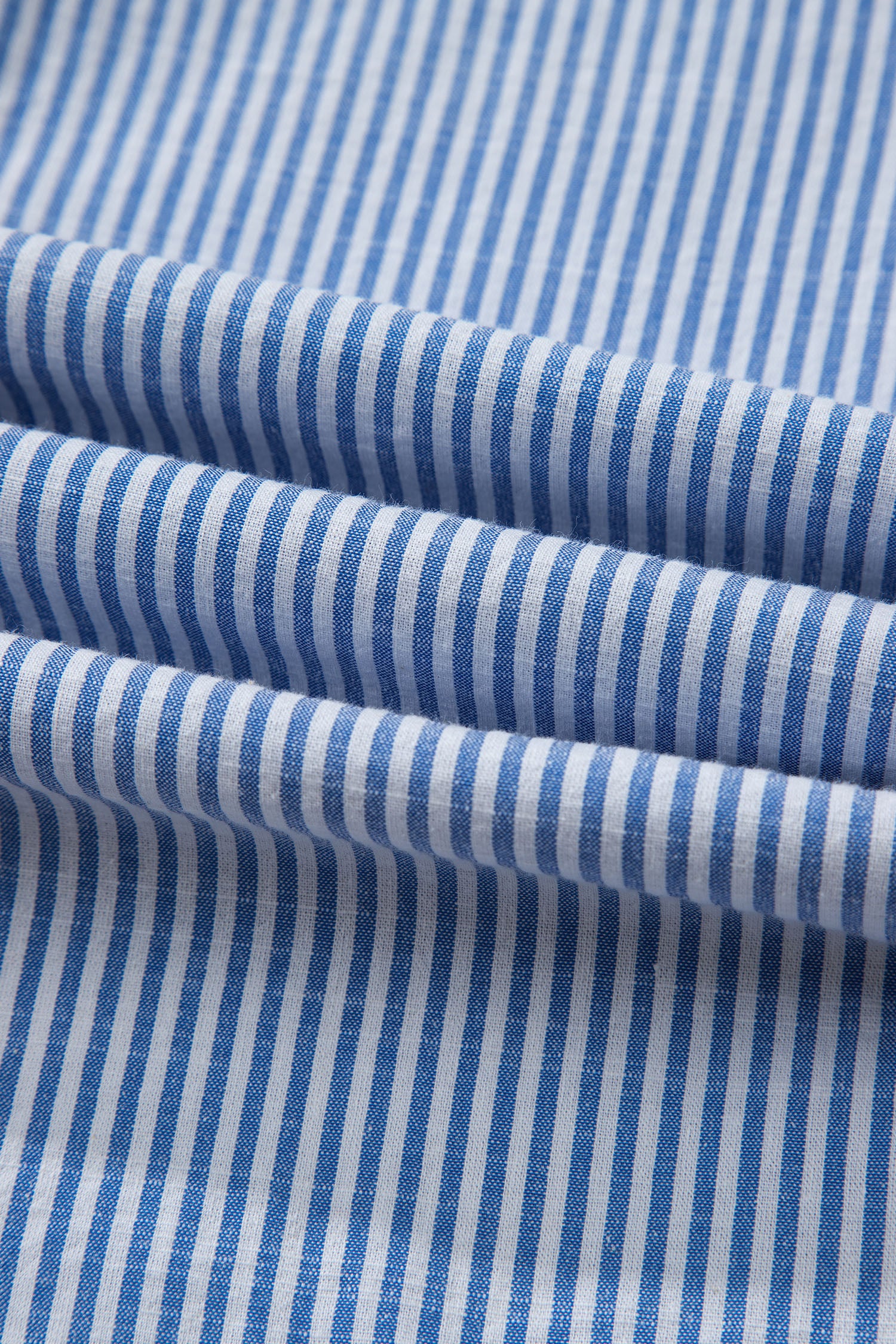 Sky Blue Stripe Contrast Frilled Leopard Trim Casual Long Sleeve Shirt