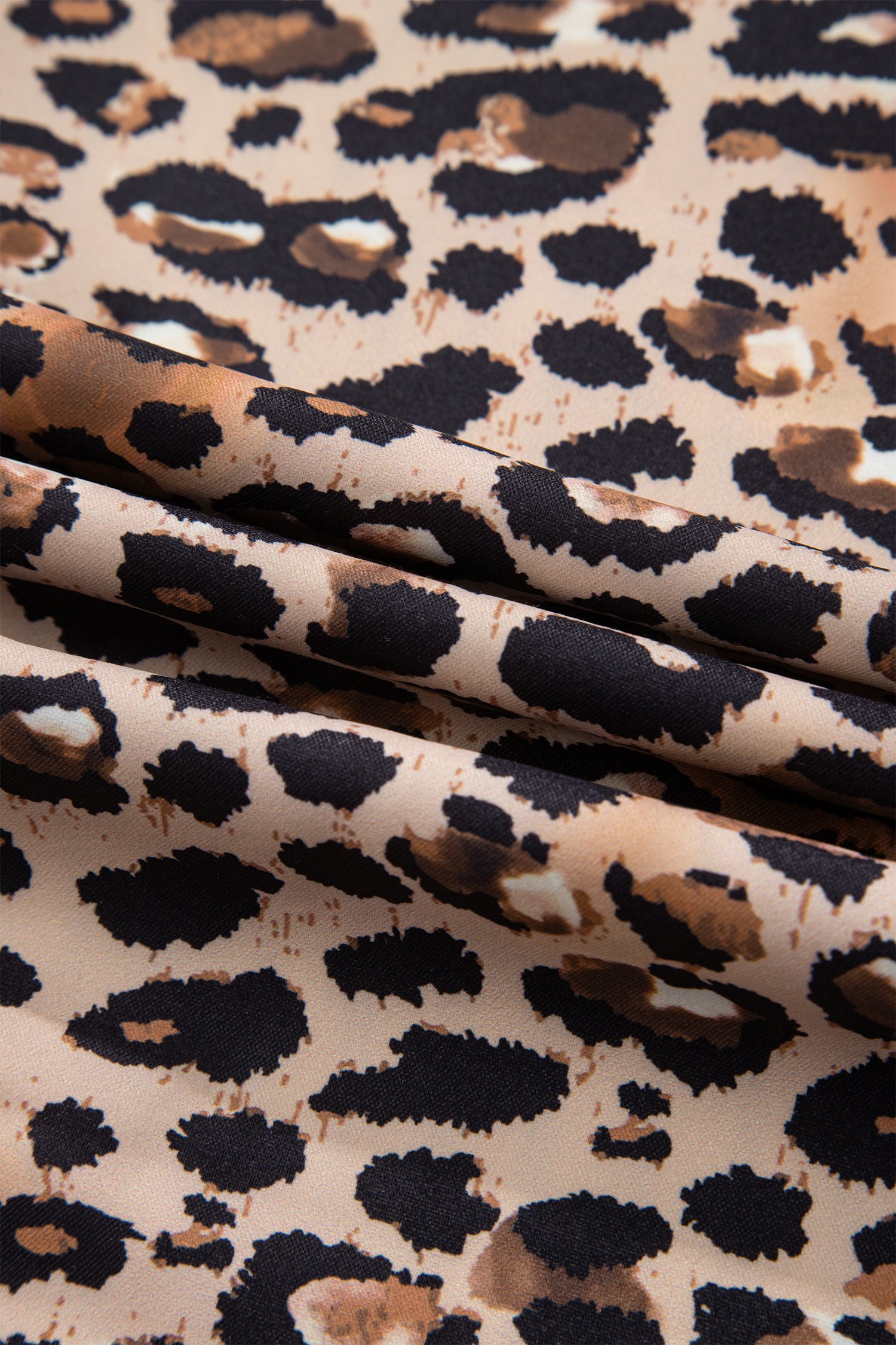 Stripe Contrast Leopard Patchwork Long Shirt Dress with Slits