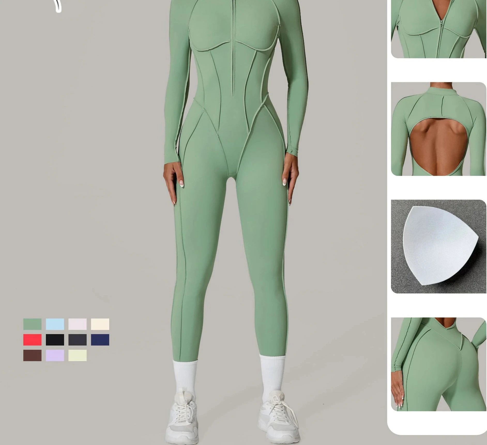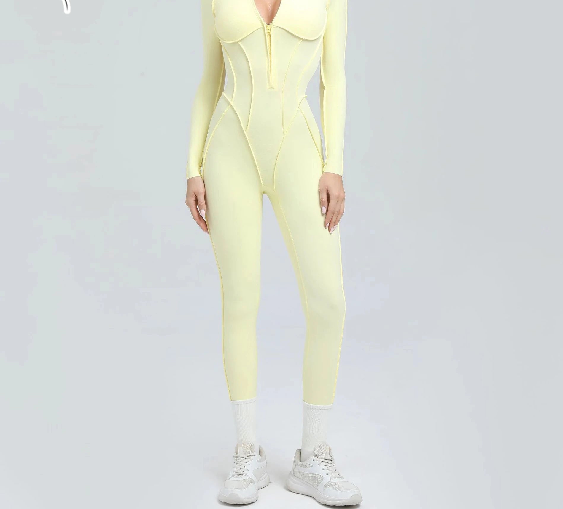 Nylon Jumpsuit - Yoga Fitness Bodysuit with Zipper