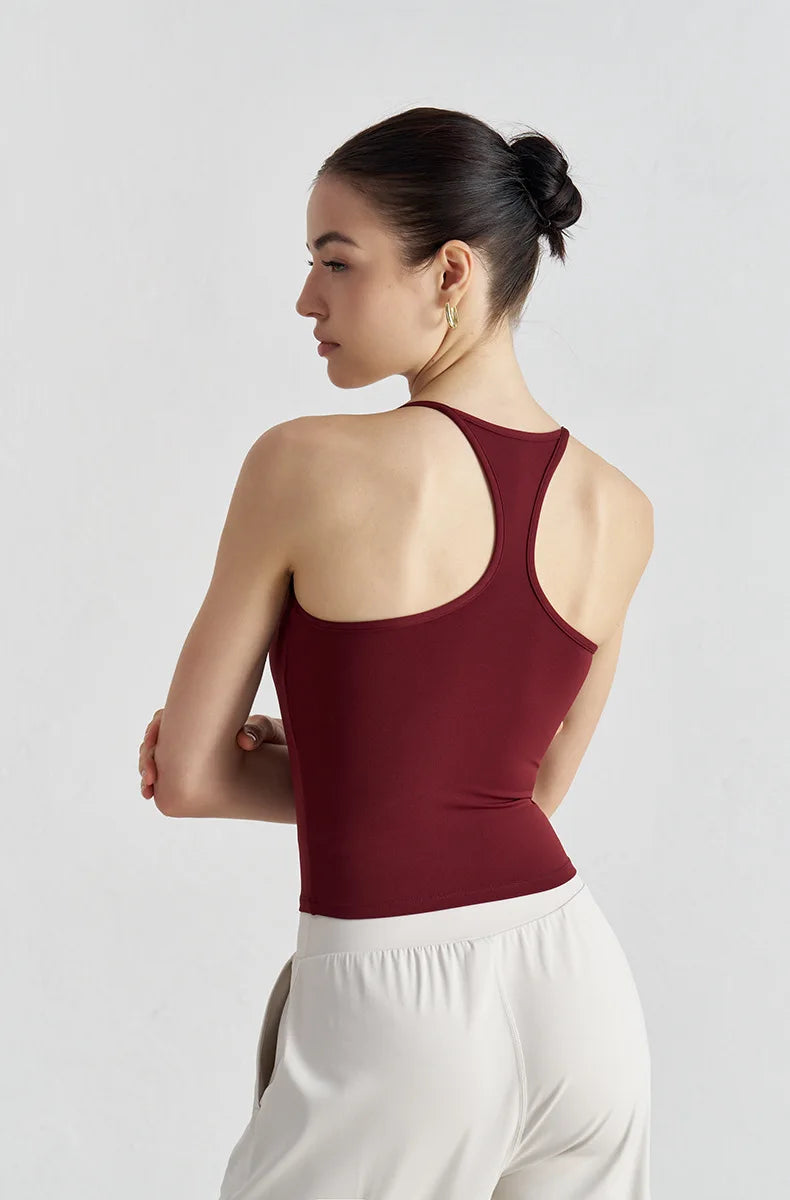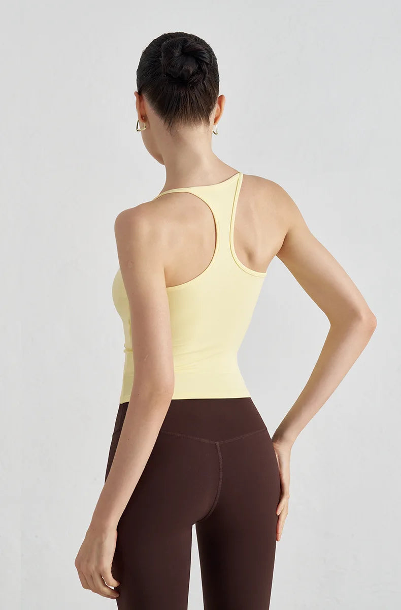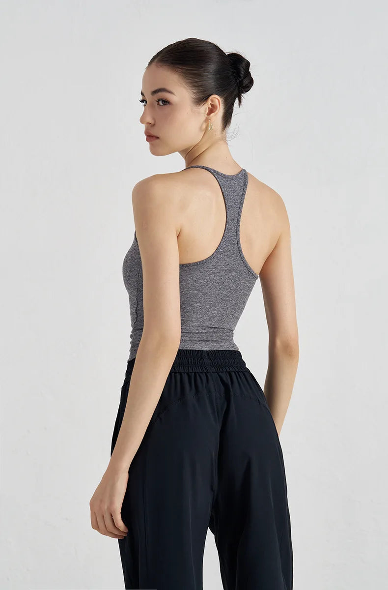 High Support Sports Bra with Fixed Cups - Breathable Nylon Fitness Top