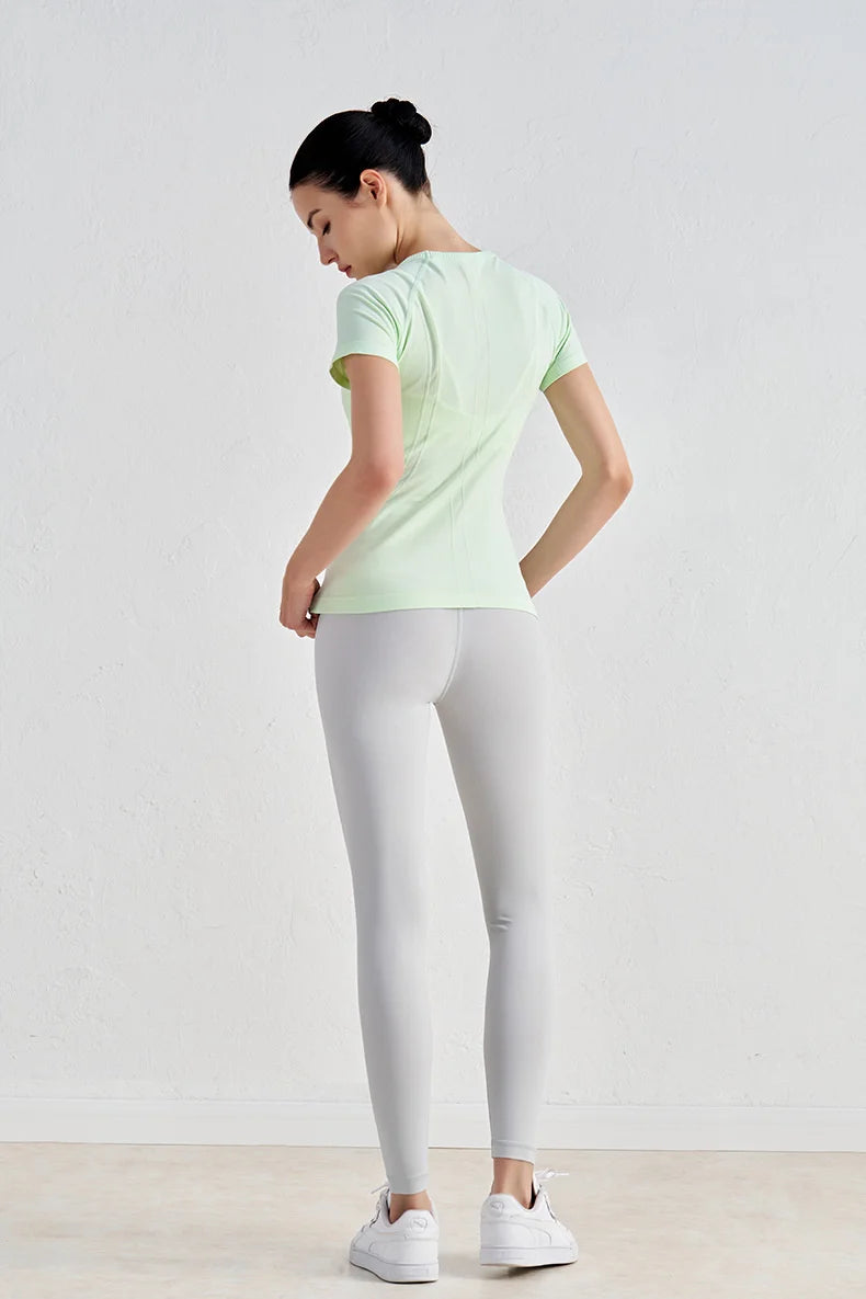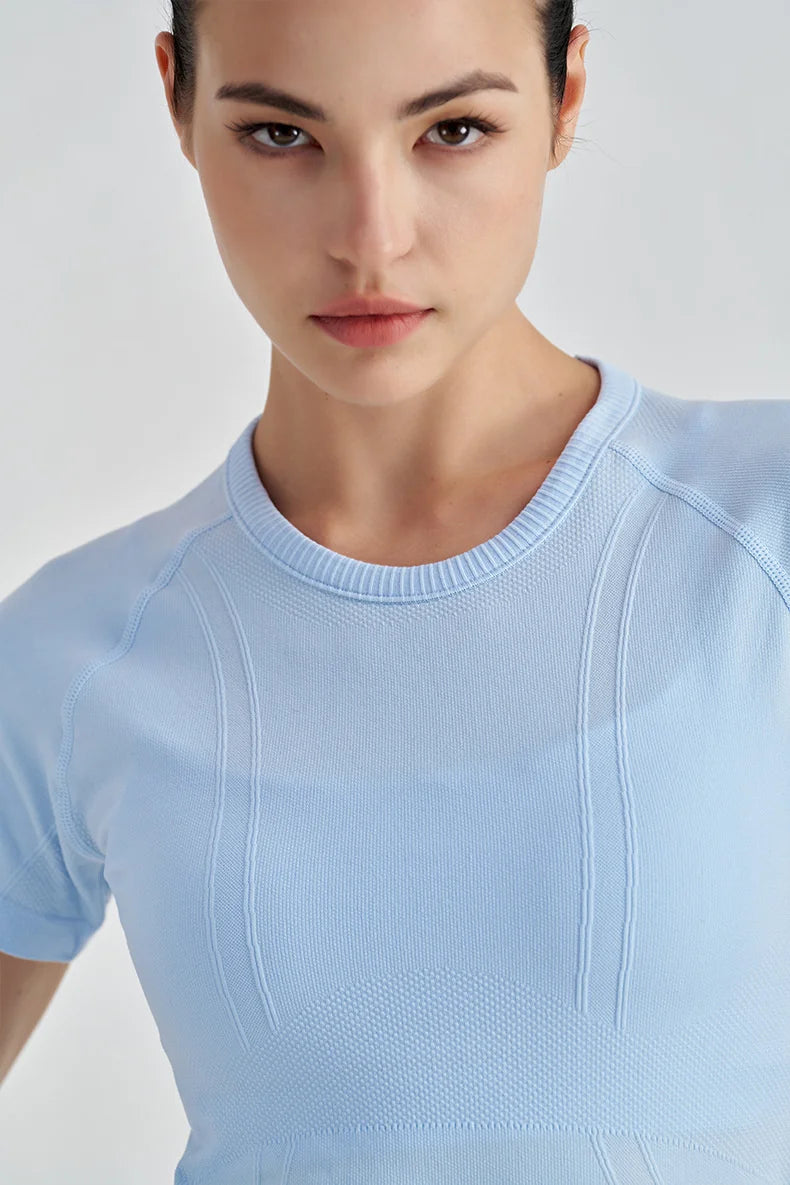 Experience ultimate comfort with this seamless short sleeve fitness top, expertly crafted to deliver a second-skin feel during your most demanding workouts. The quick-dry, breathable fabric ensures you stay cool and focused, whether you're flowing through yoga poses or pushing through high-intensity training.
