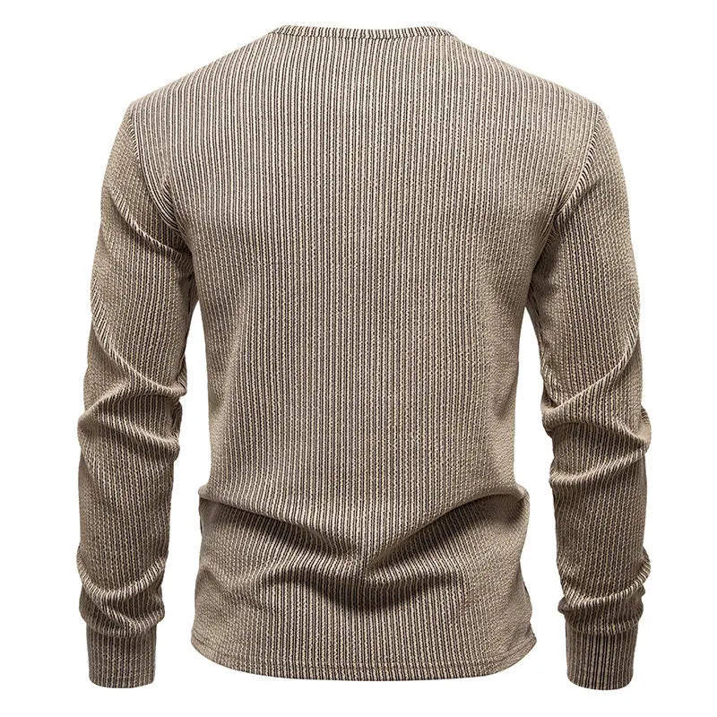 Elevate your casual wardrobe with this versatile men's Henry collar t-shirt, perfect for spring and autumn wear. Featuring a classic solid and striped design with a sophisticated Henry collar, this long sleeve pullover combines smart casual styling with breathable comfort for all-day wearability.