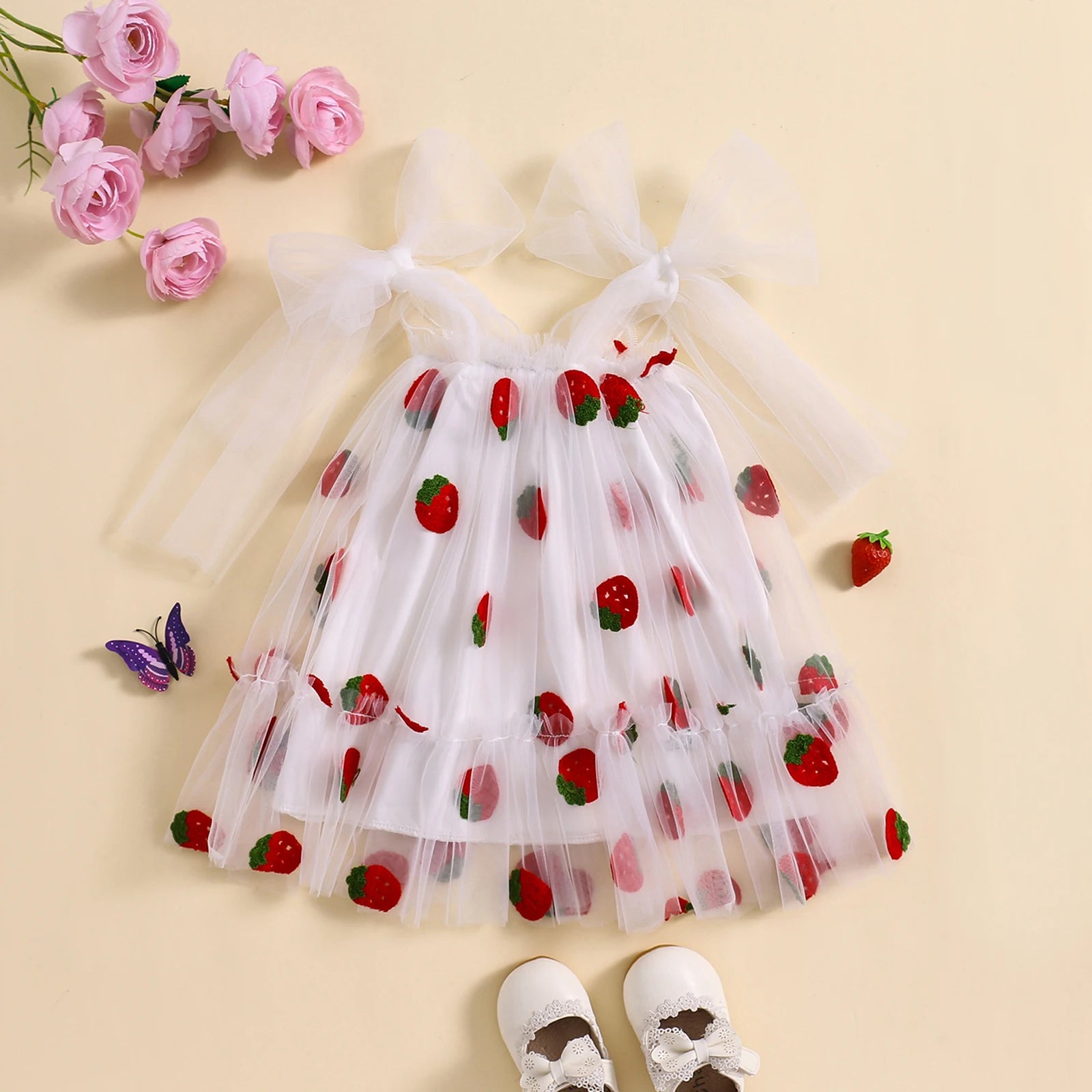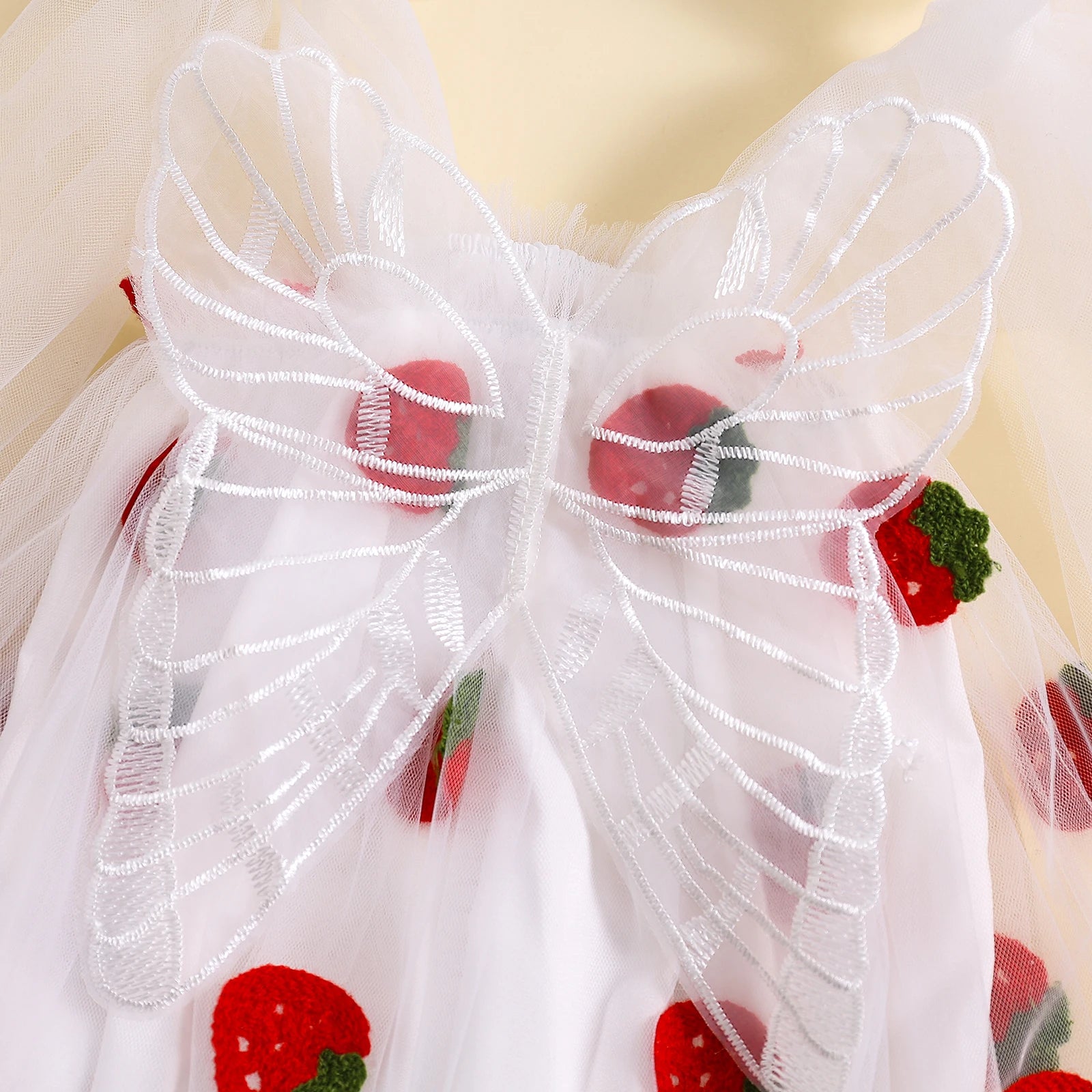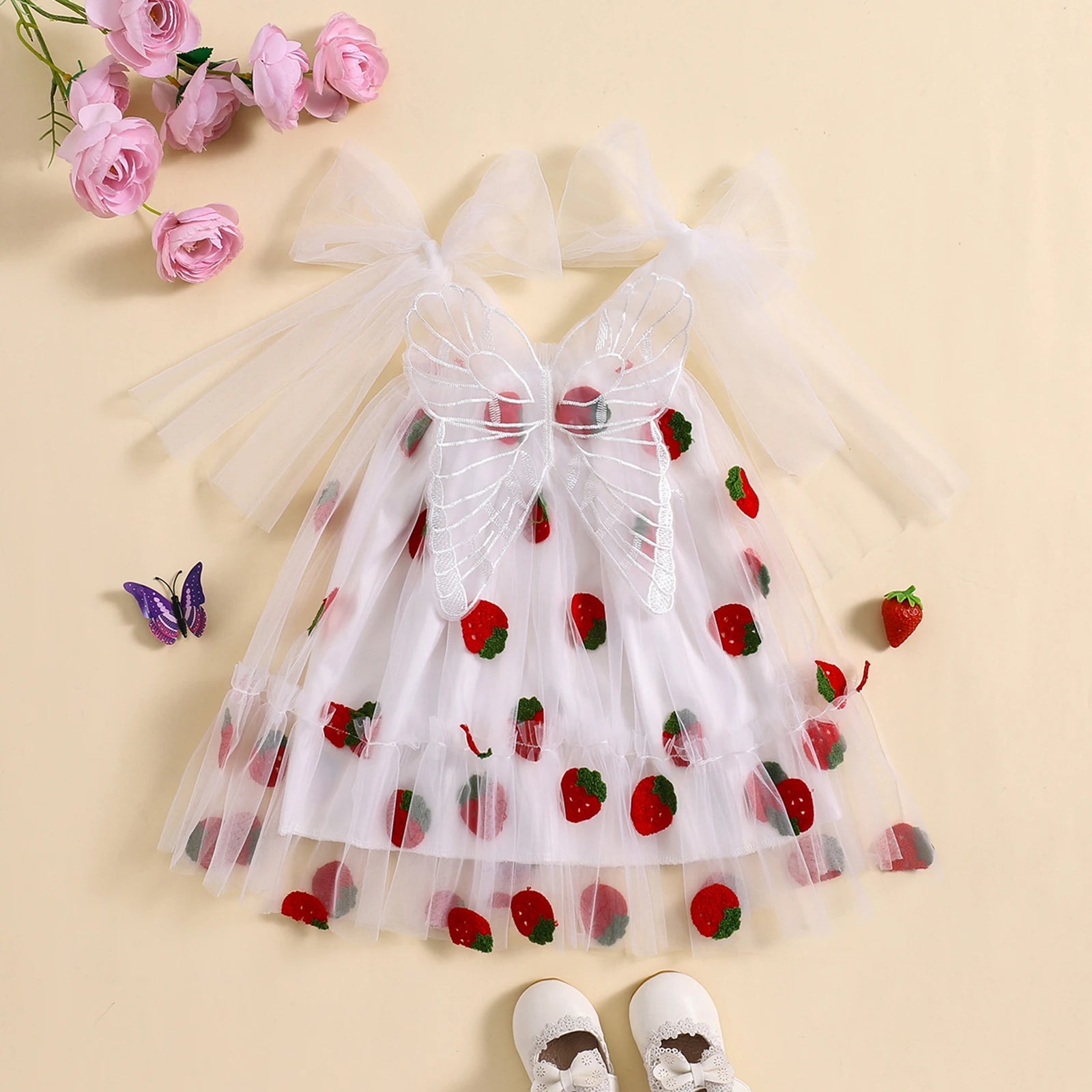 Summer Baby Girls Princess Dress 0-3Y Sleeveless Straps Print Mesh Tulle Sundress with Butterfly Wing