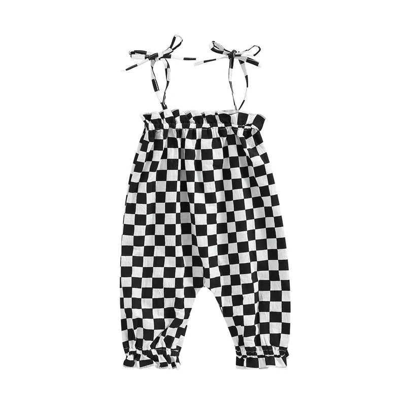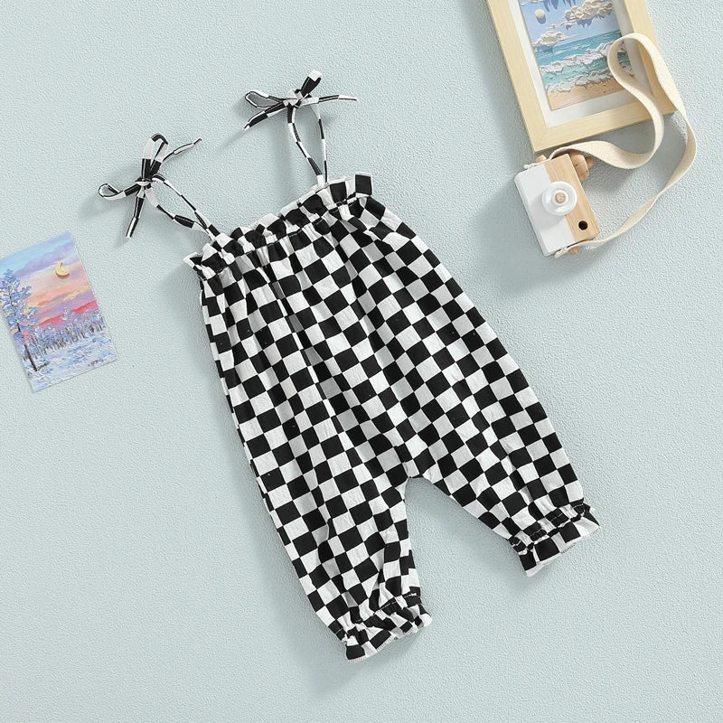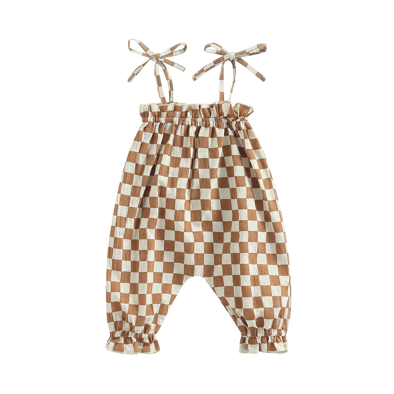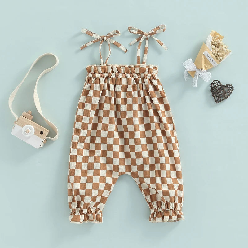 Summer Baby Girls Sweet Romper Clothing 0-24M Strap Sleeveless Lace Up Plaid Printed Jumpsuit