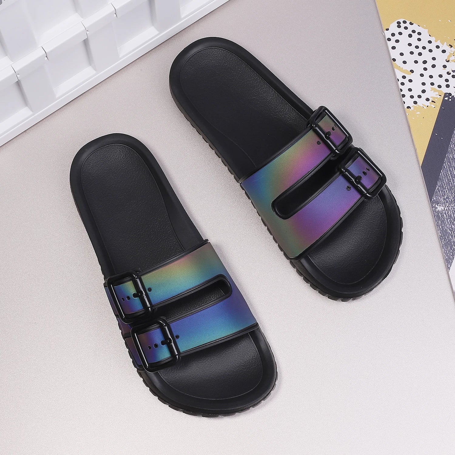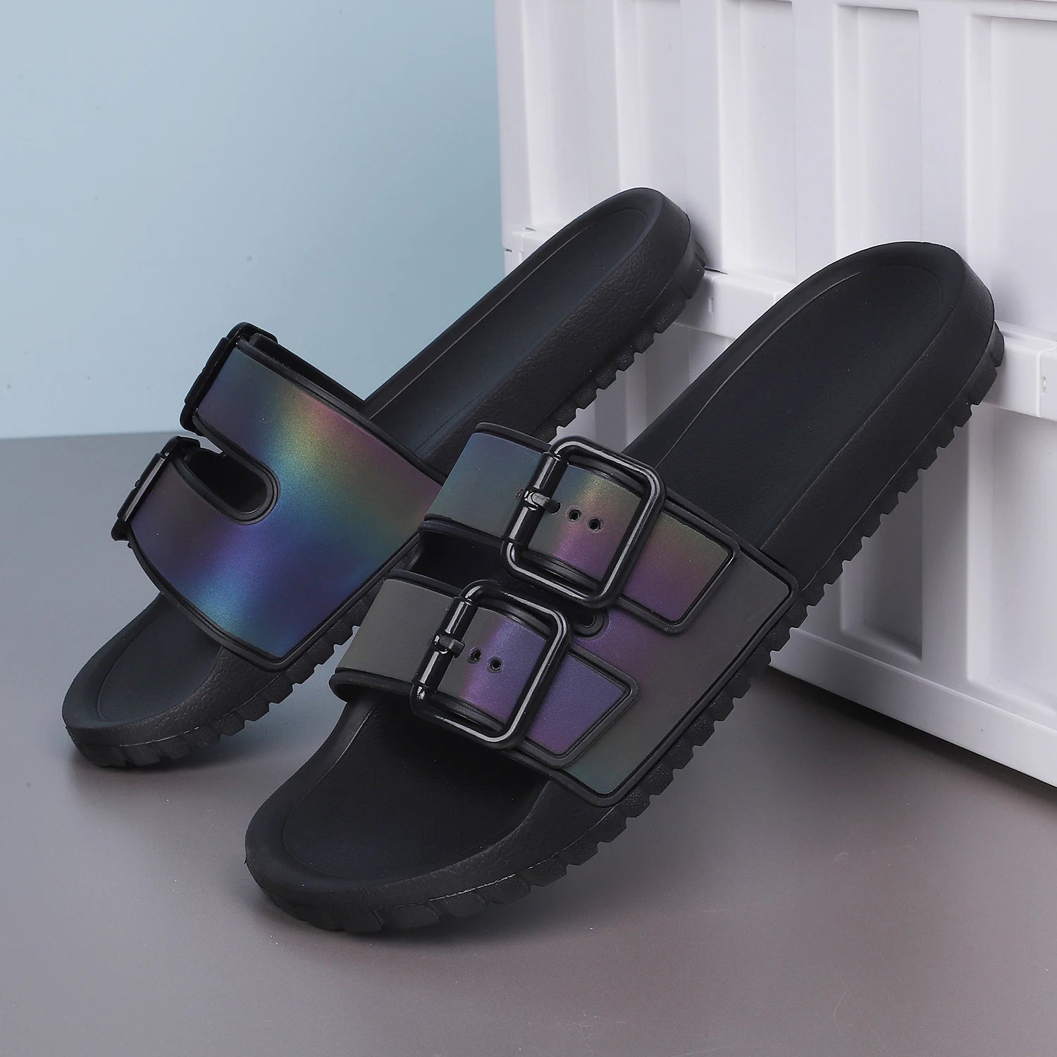Men's Summer Slippers Laser Reflection Sandals Buckle Design Beach Slippers