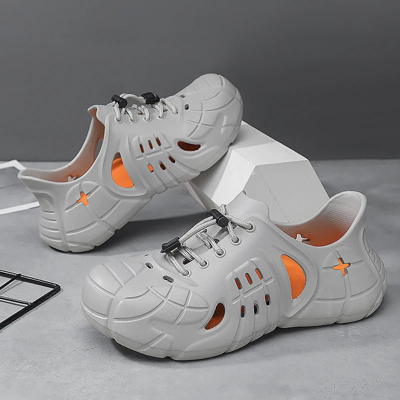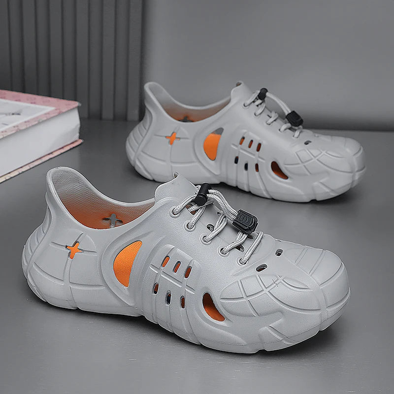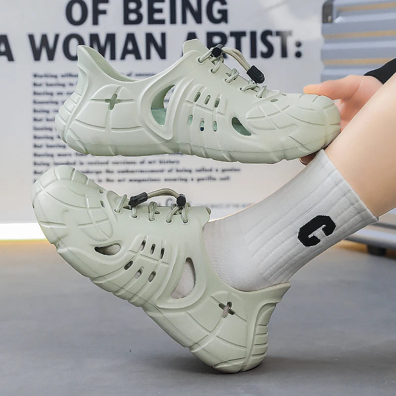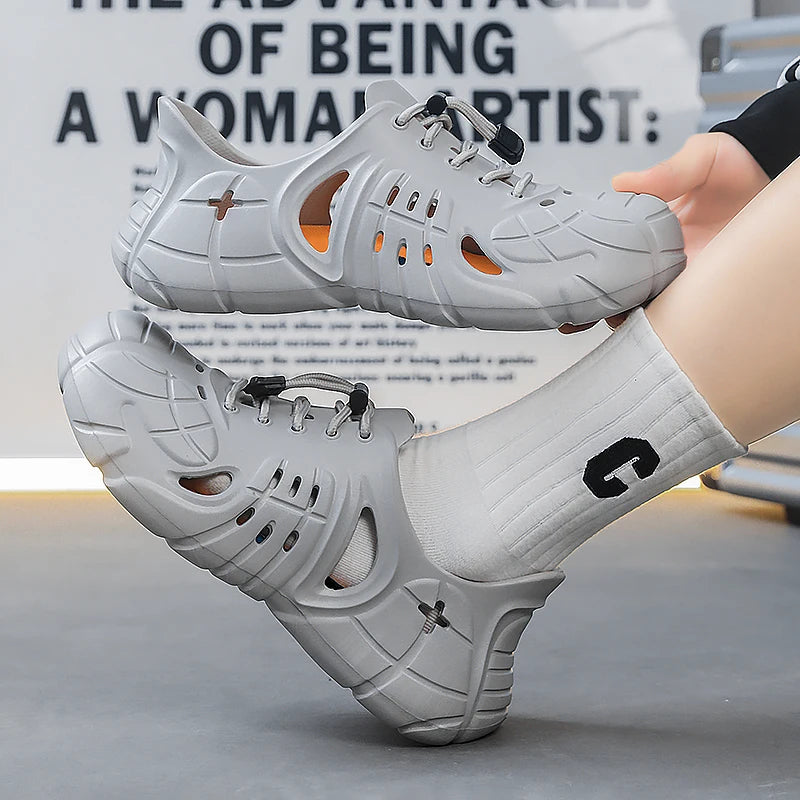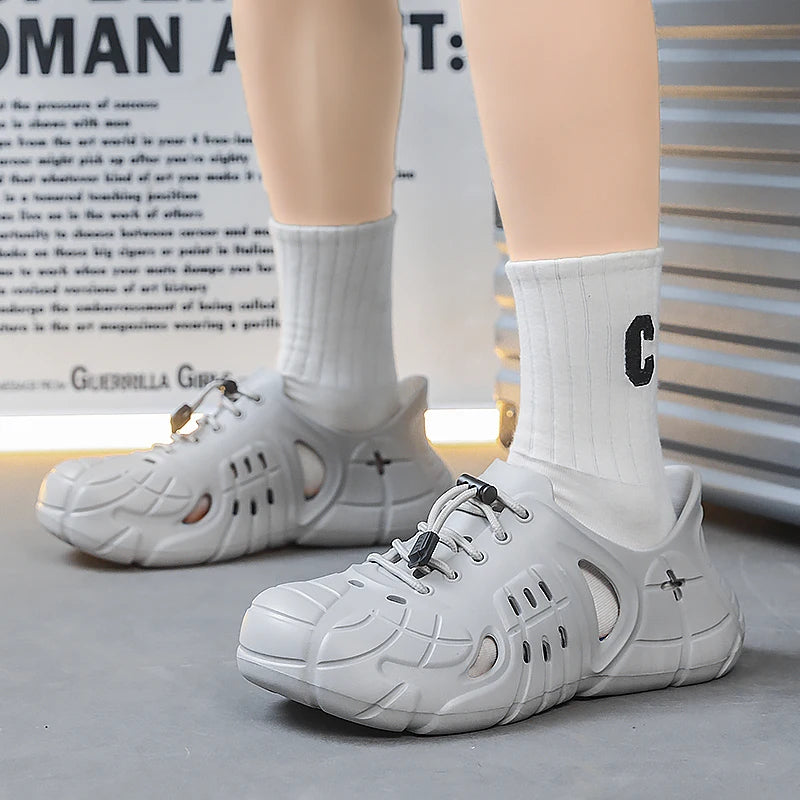 Versatile summer footwear designed for the active man. These lightweight platform clogs combine the comfort of slides with the practicality of water shoes, making them perfect for beach days, garden work, poolside relaxation, and casual outdoor activities.