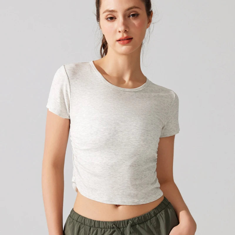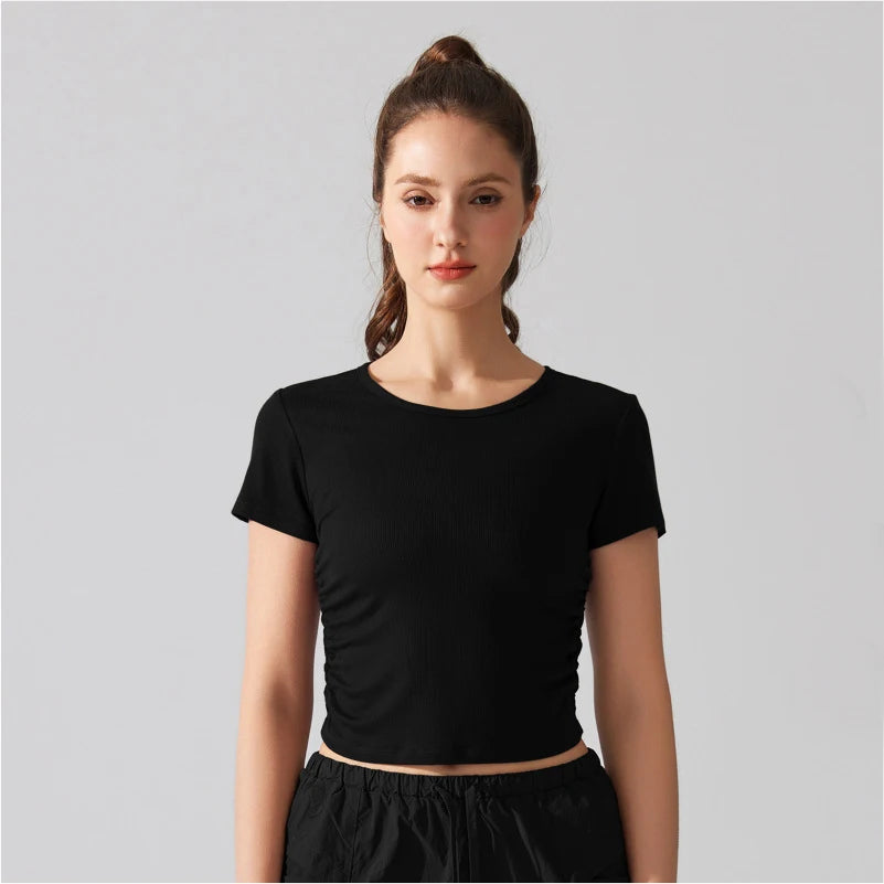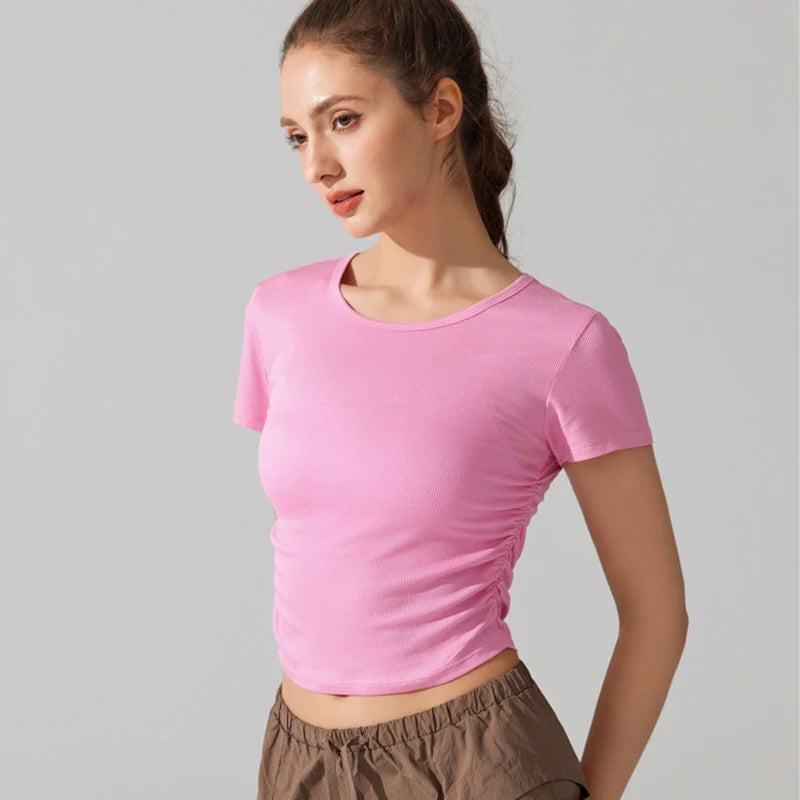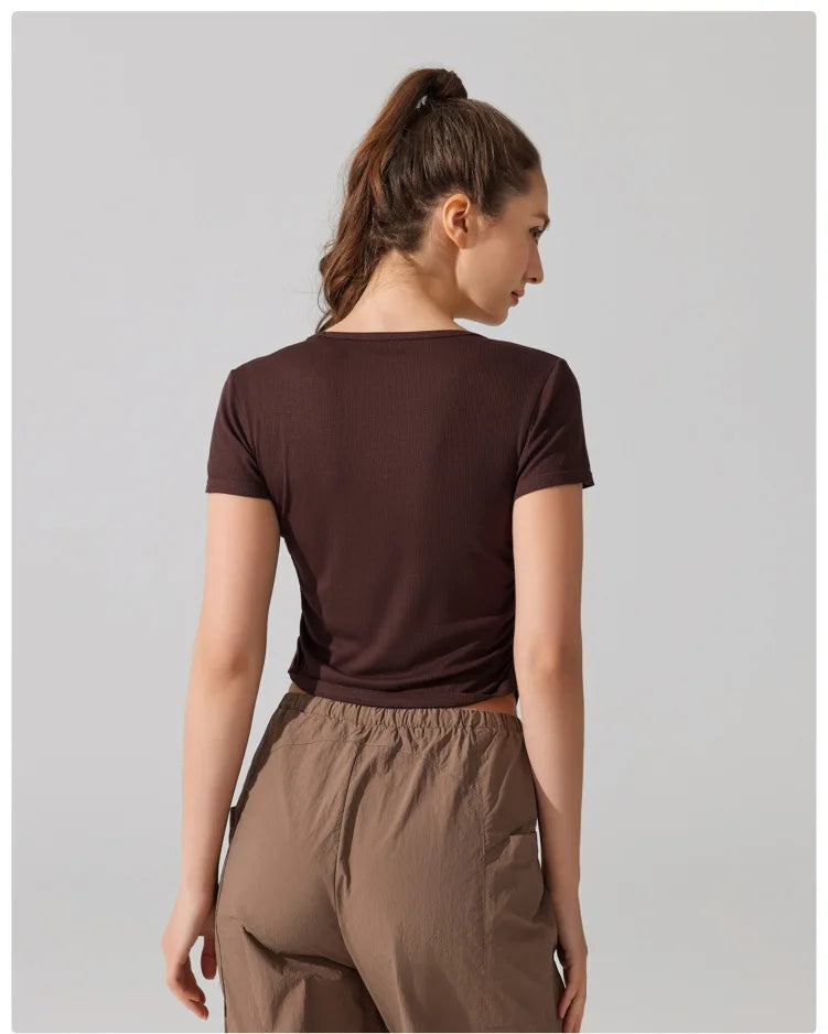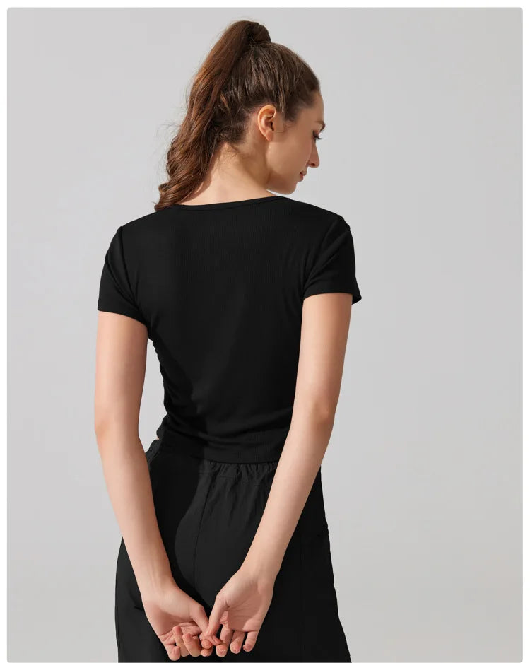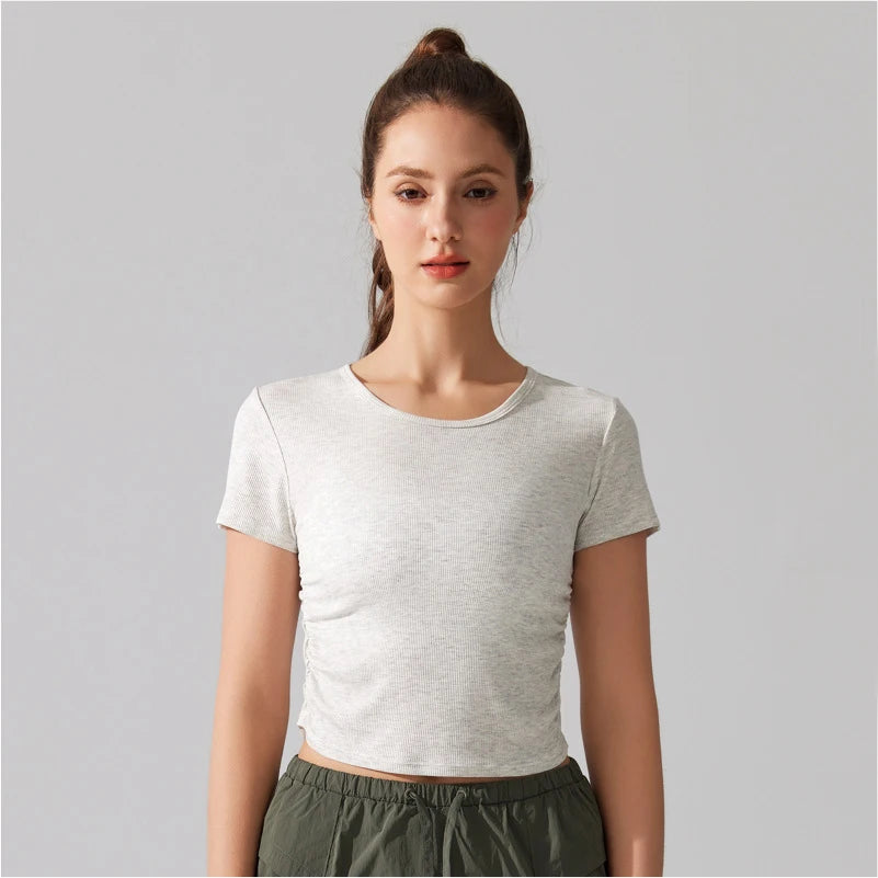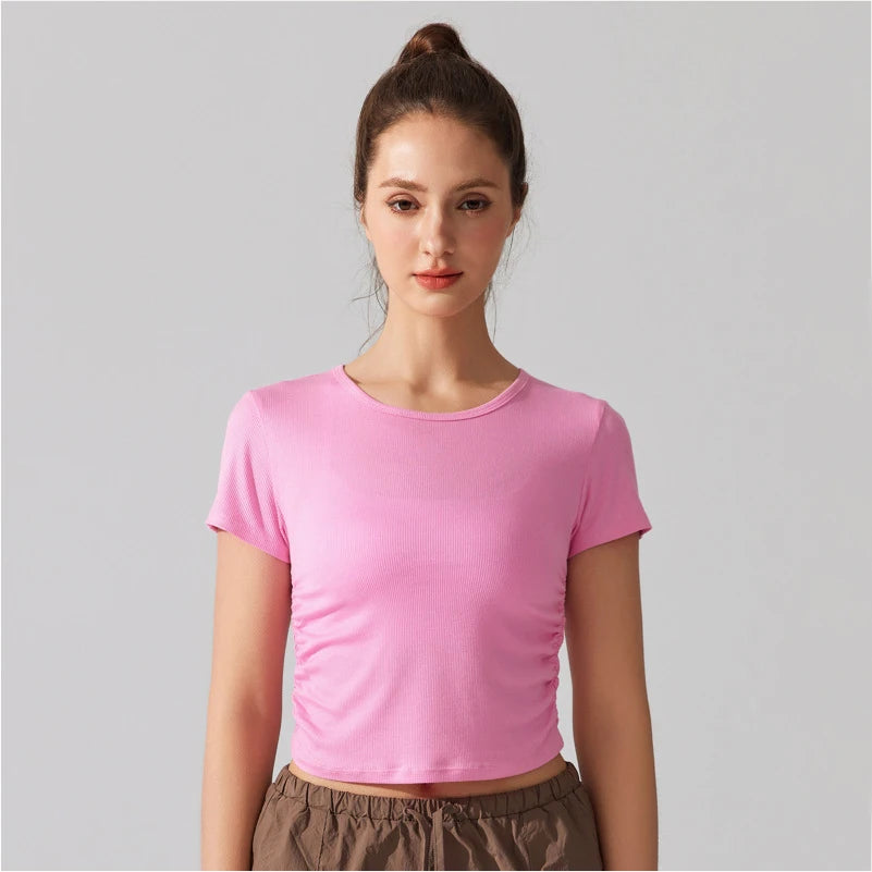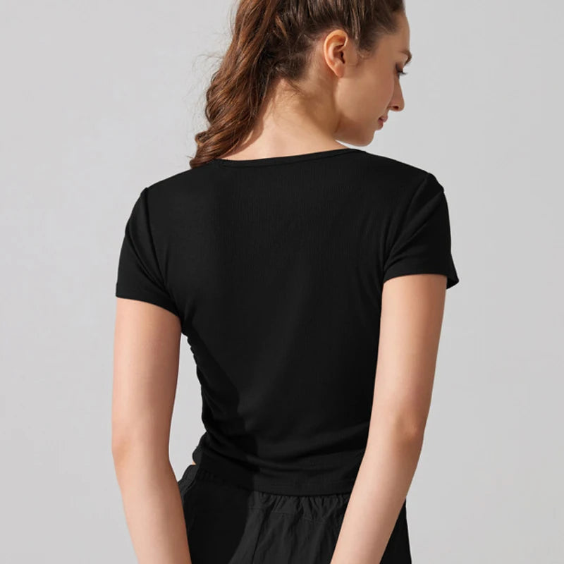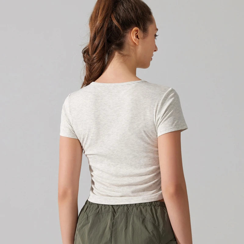 Women's Breathable Yoga Crop Top - Slim Fit Athletic T-Shirt