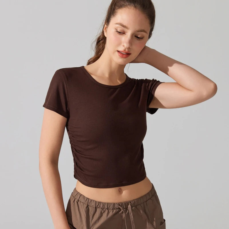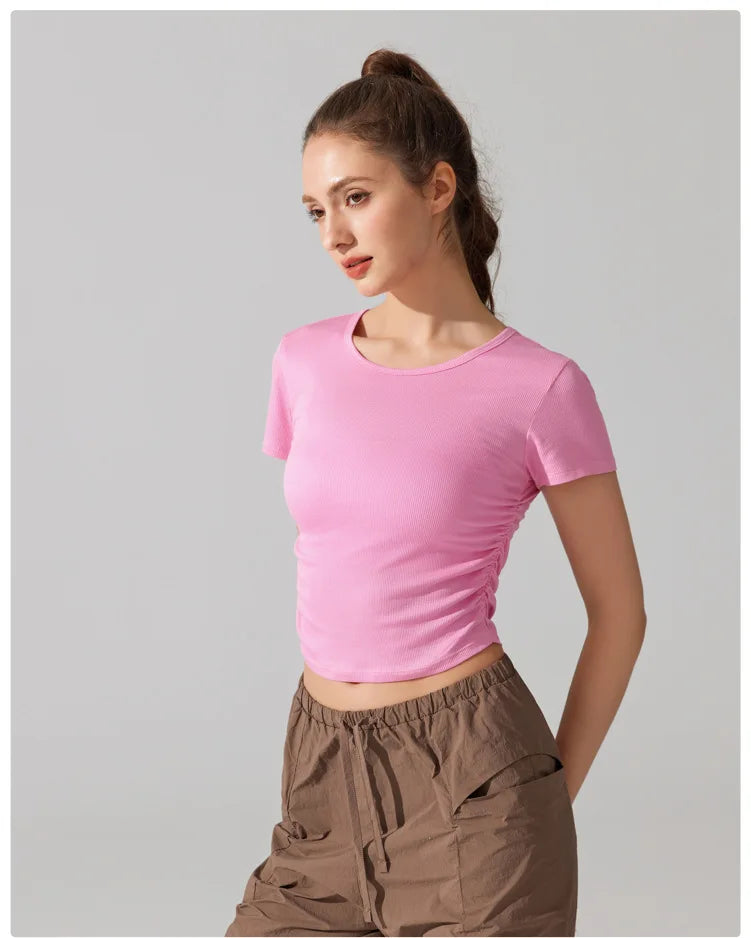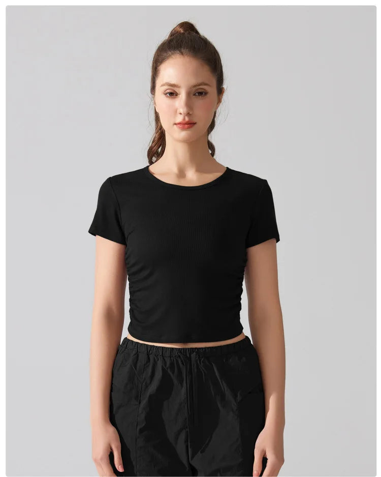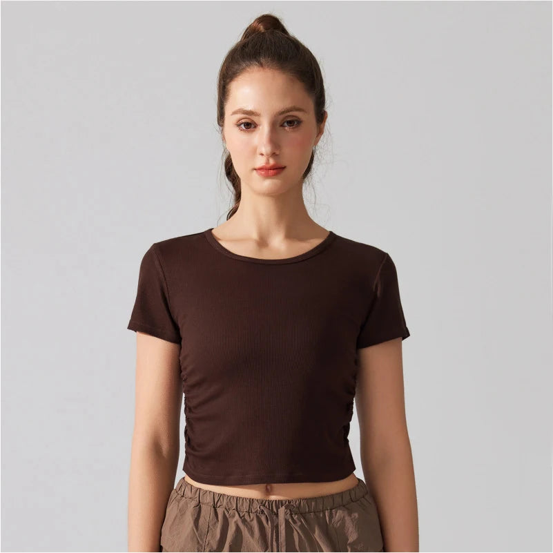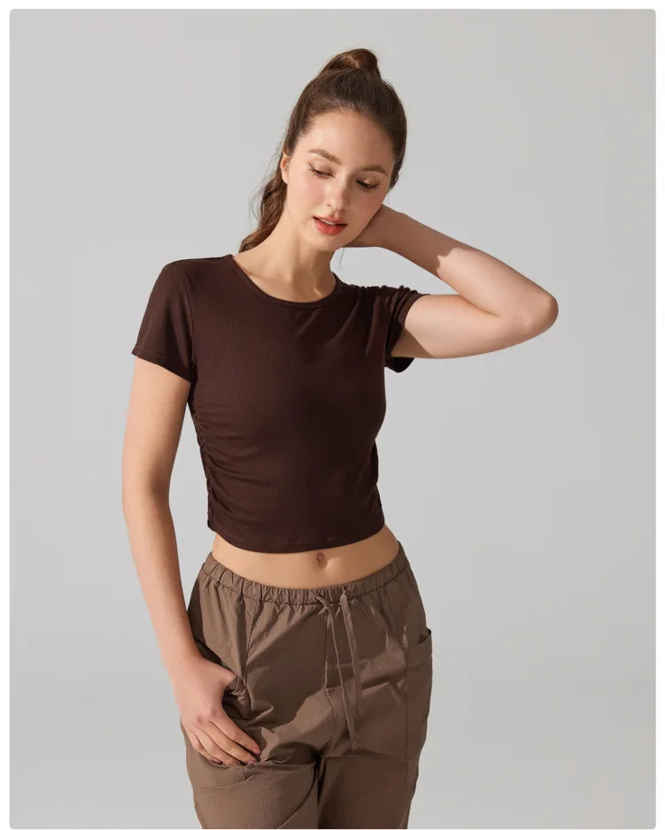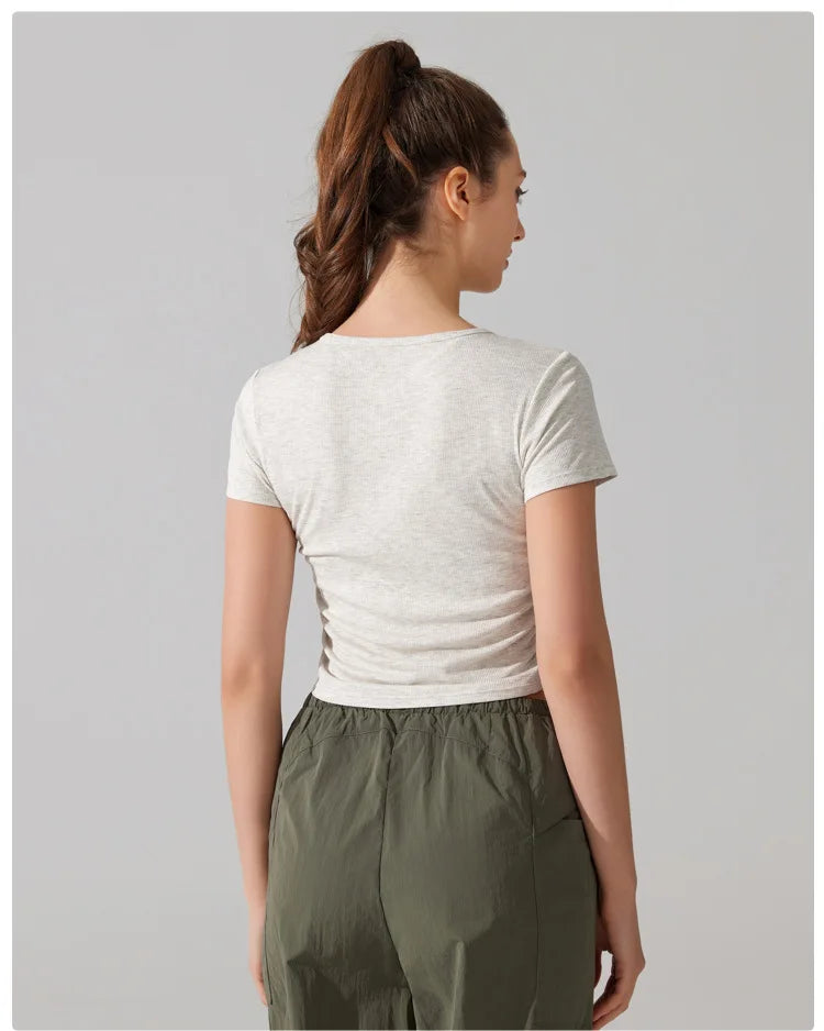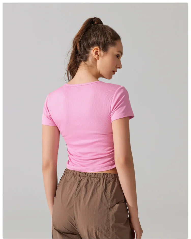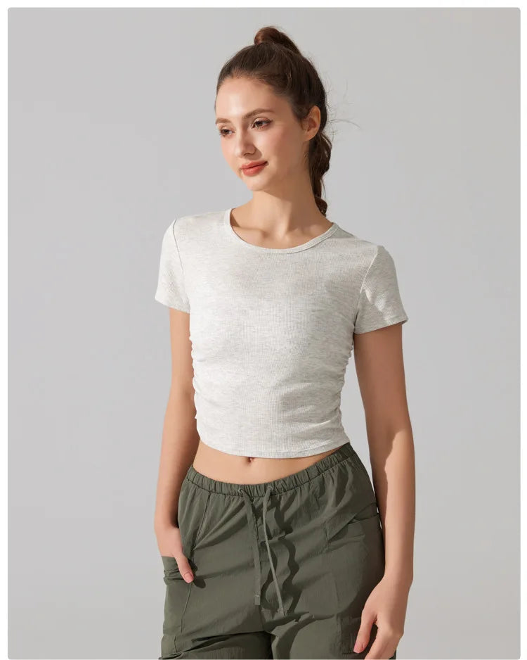 Women's Breathable Yoga Crop Top - Slim Fit Athletic T-Shirt