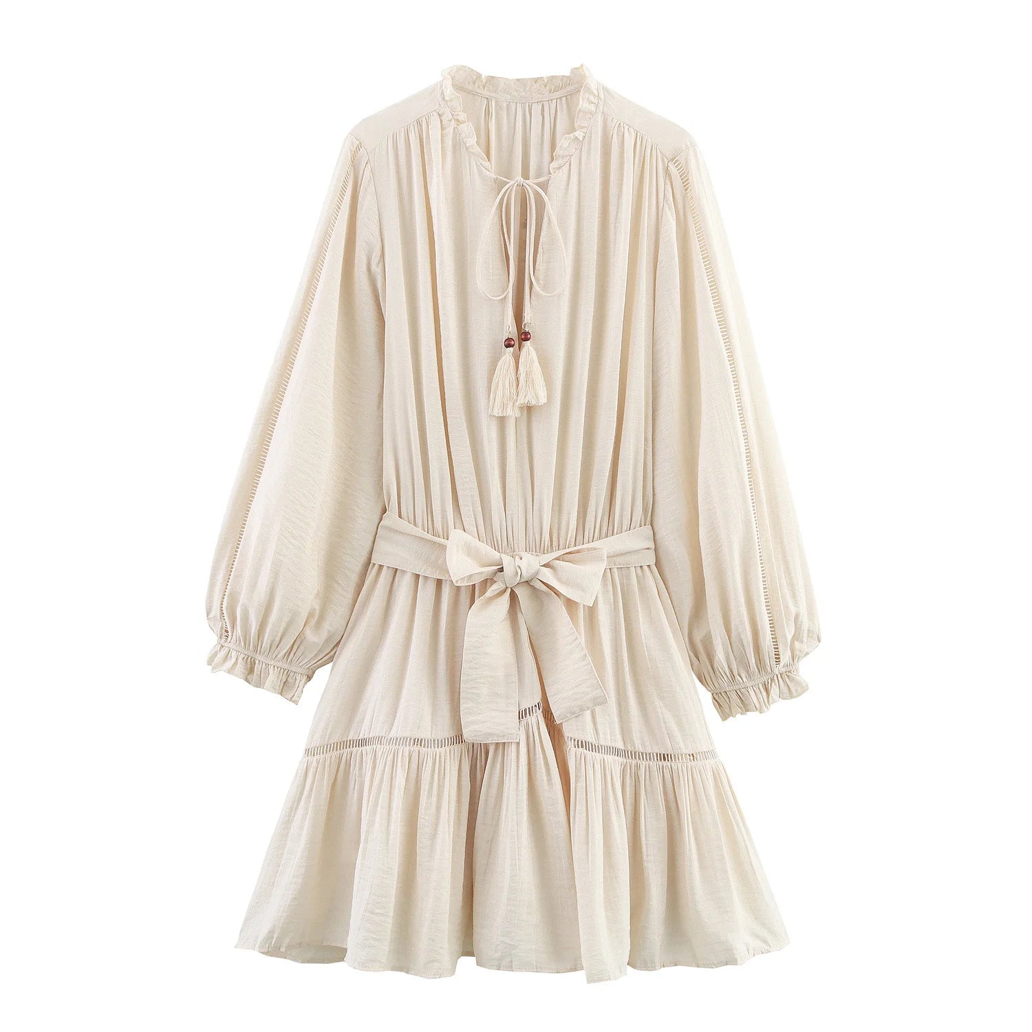 Embrace your wanderlust spirit with this enchanting lace patchwork dress, perfect for vacation adventures and summer getaways. The delicate lace detailing and playful tassel accents create a sweet, feminine silhouette that's both comfortable and effortlessly chic.