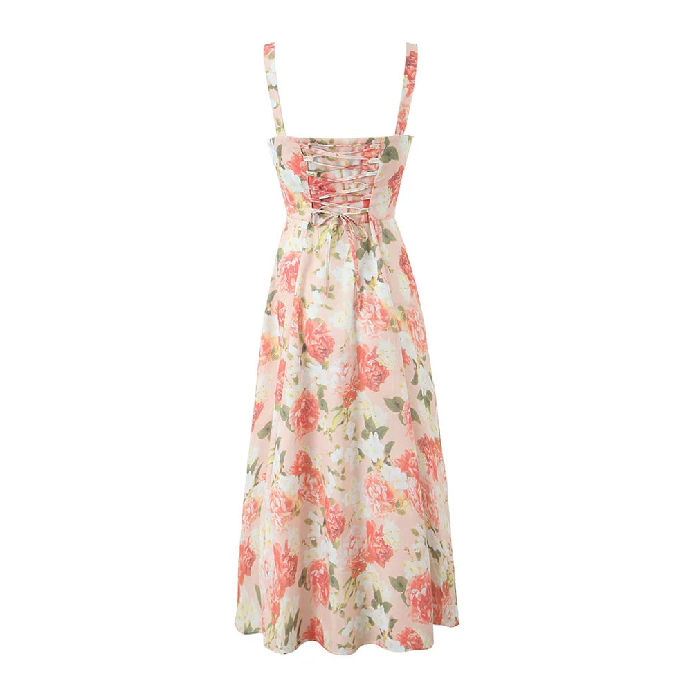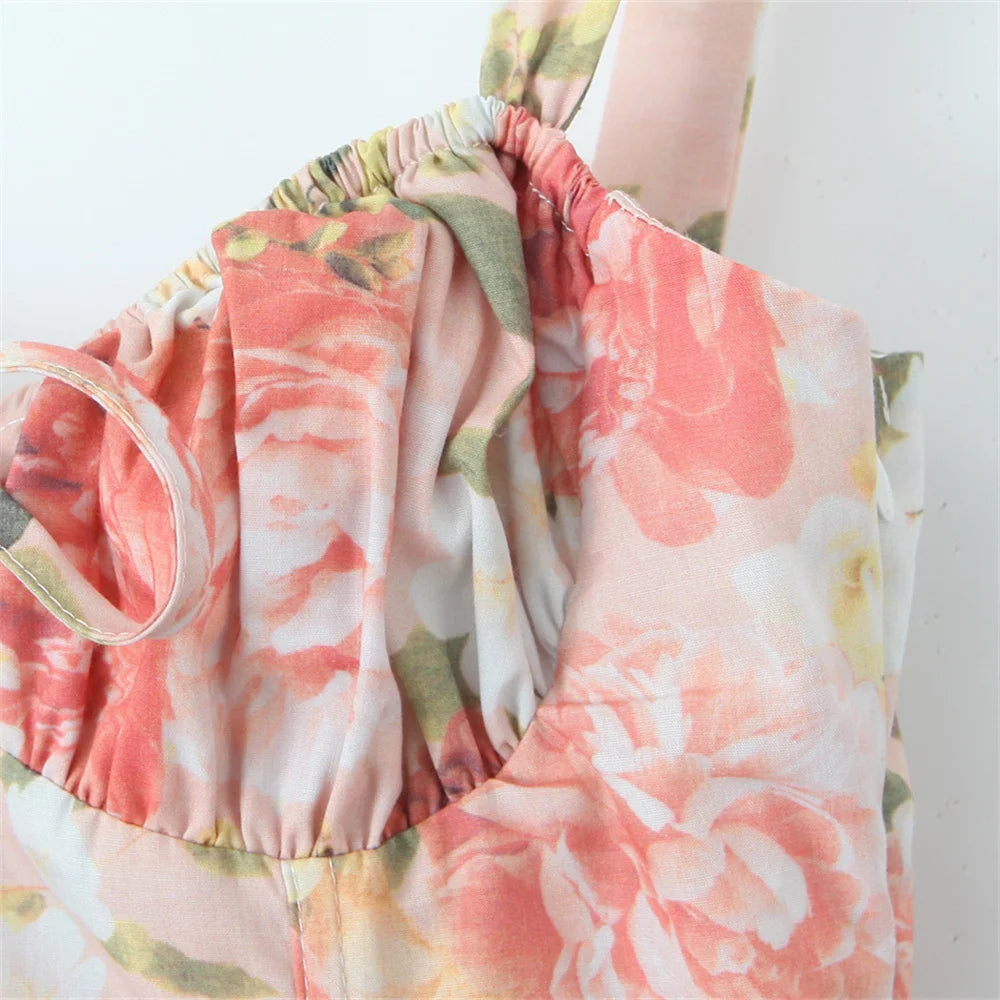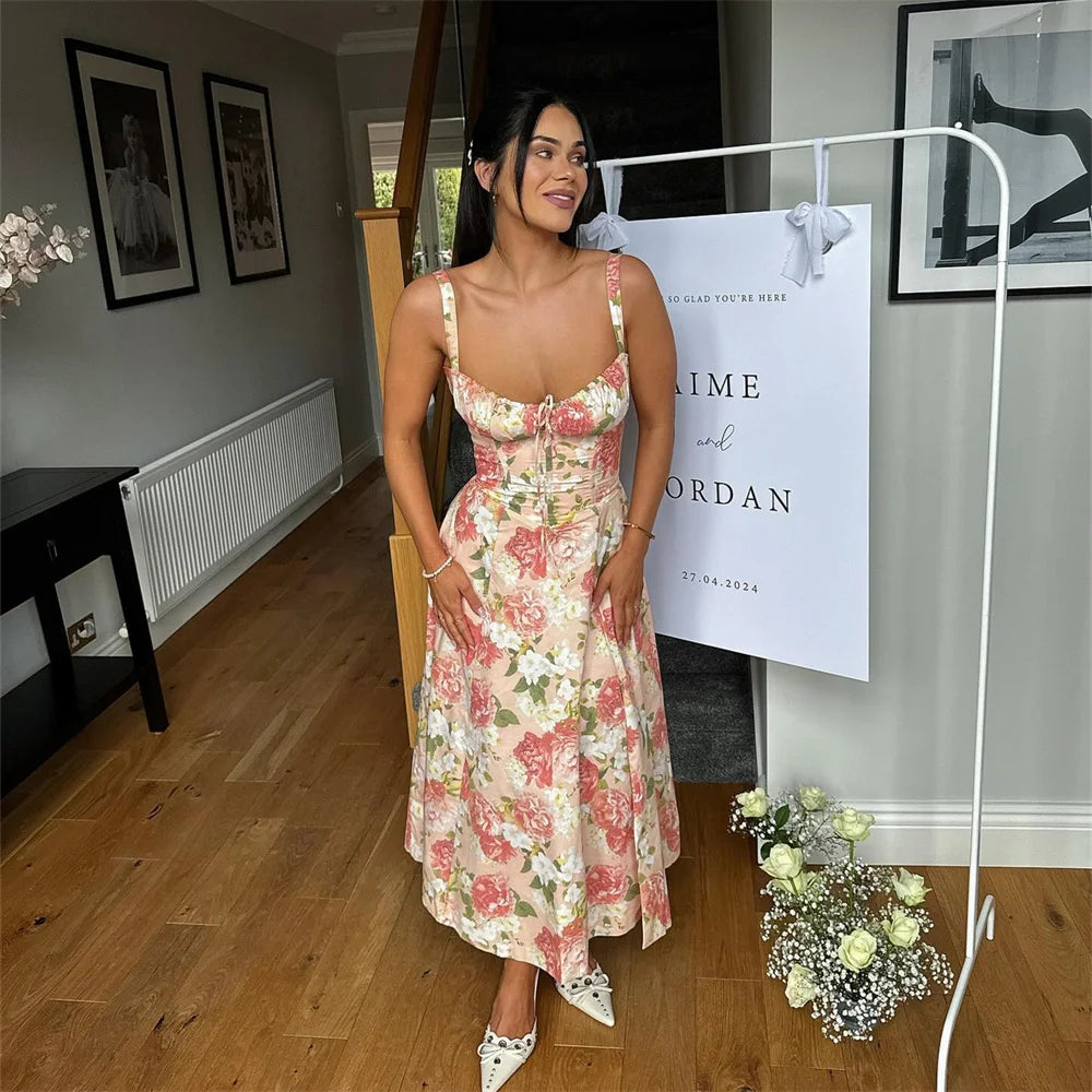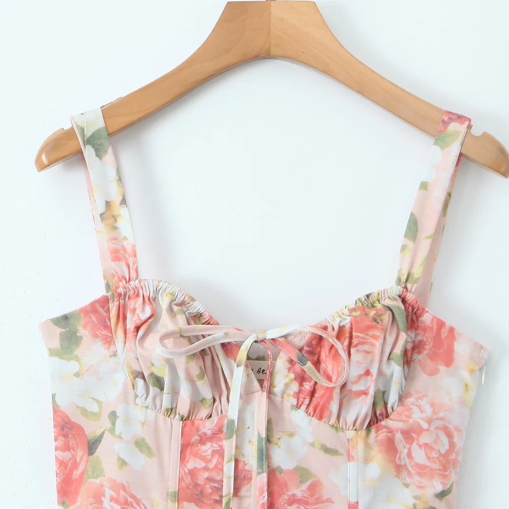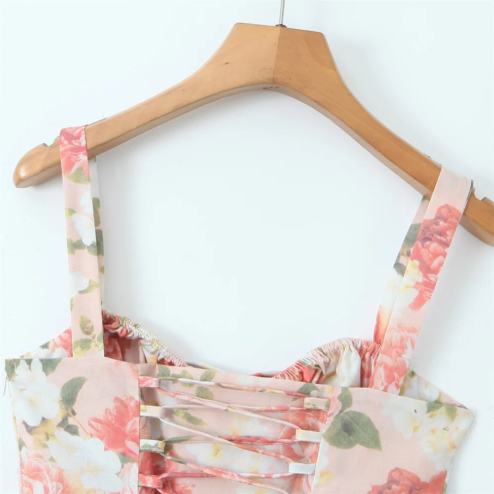 Summer Women's Sleeveless Printed Mid Length Suspender Dress