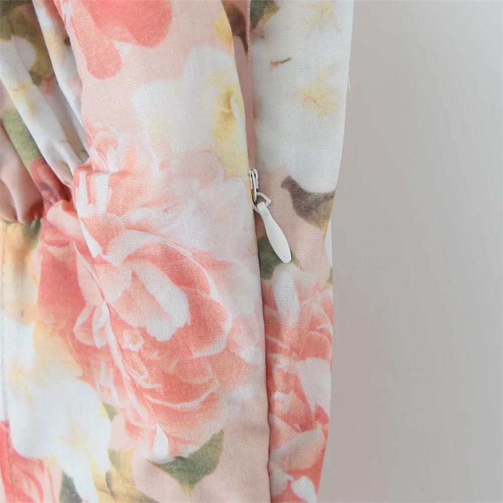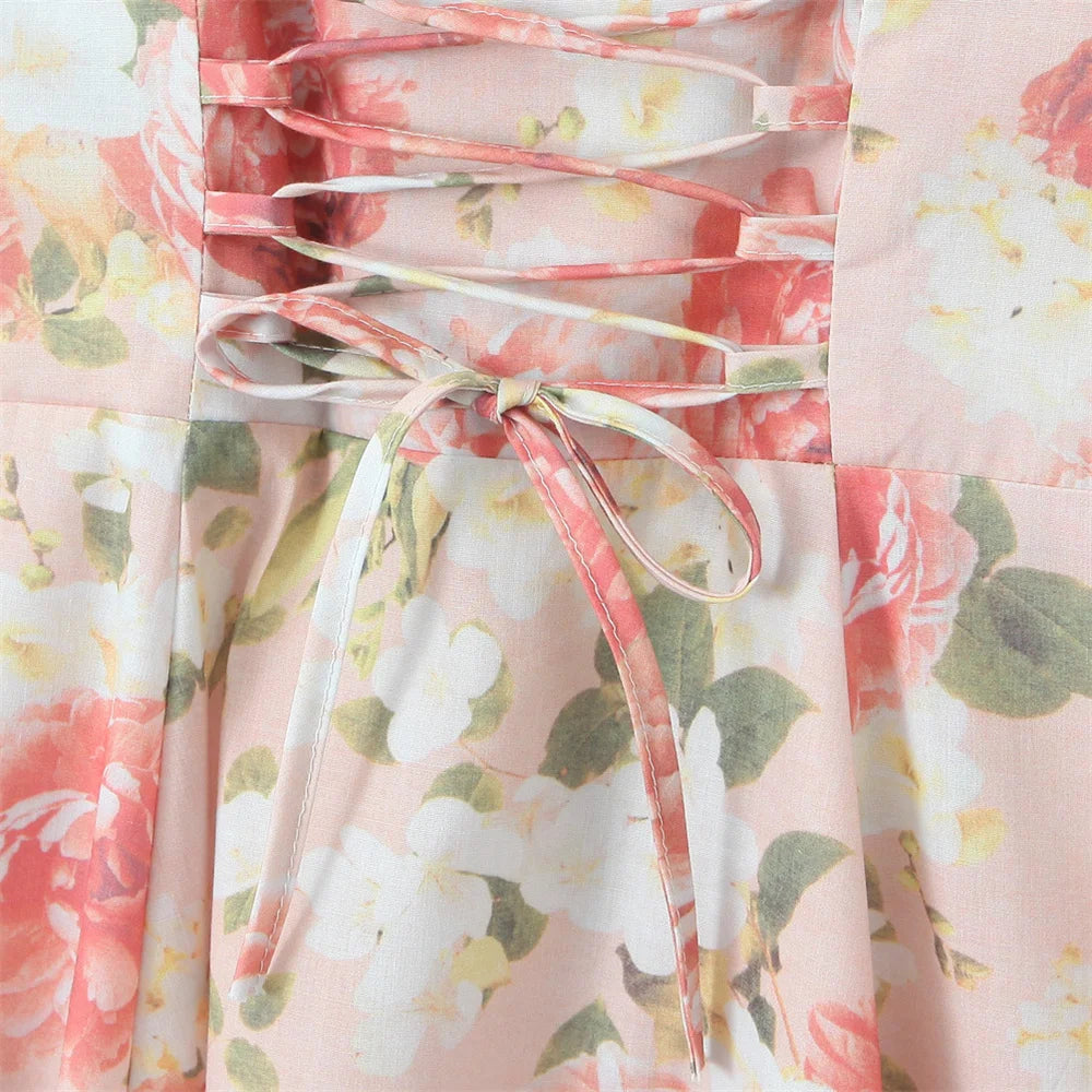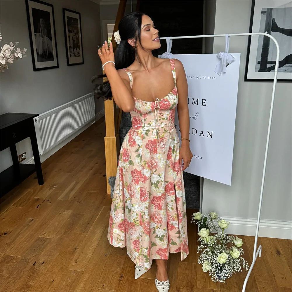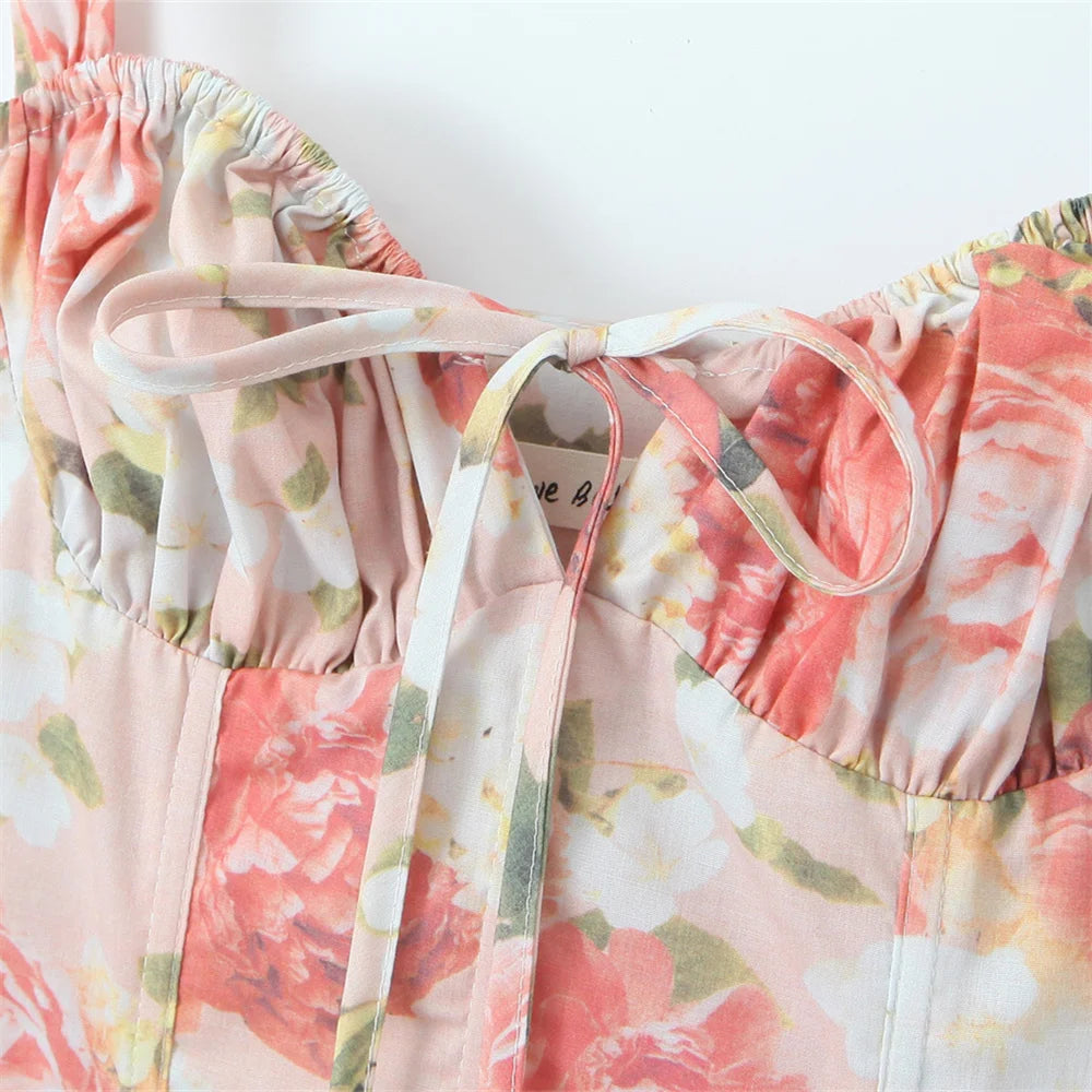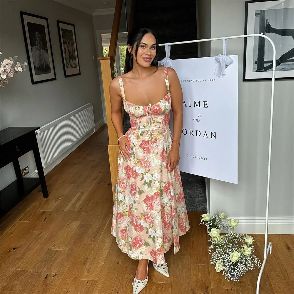 Summer Women's Sleeveless Printed Mid Length Suspender Dress