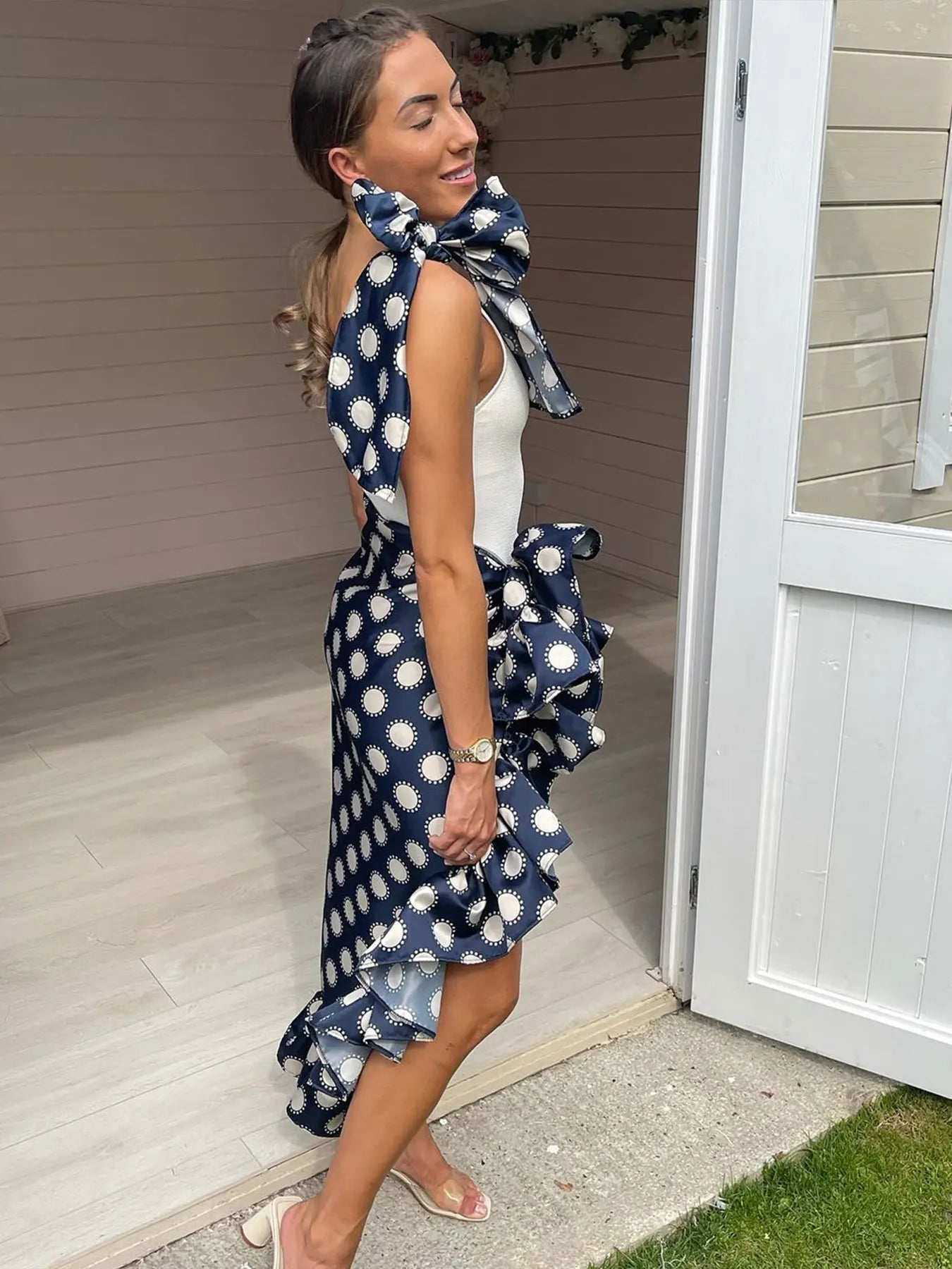 - Flattering one shoulder design