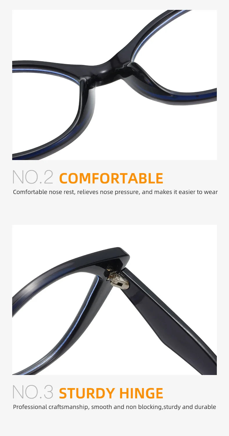 Whether you're working from home, gaming, or simply browsing your phone, these glasses help reduce digital eye strain while keeping you looking fashionable. The large cat eye frame adds a touch of retro glamour to any outfit.