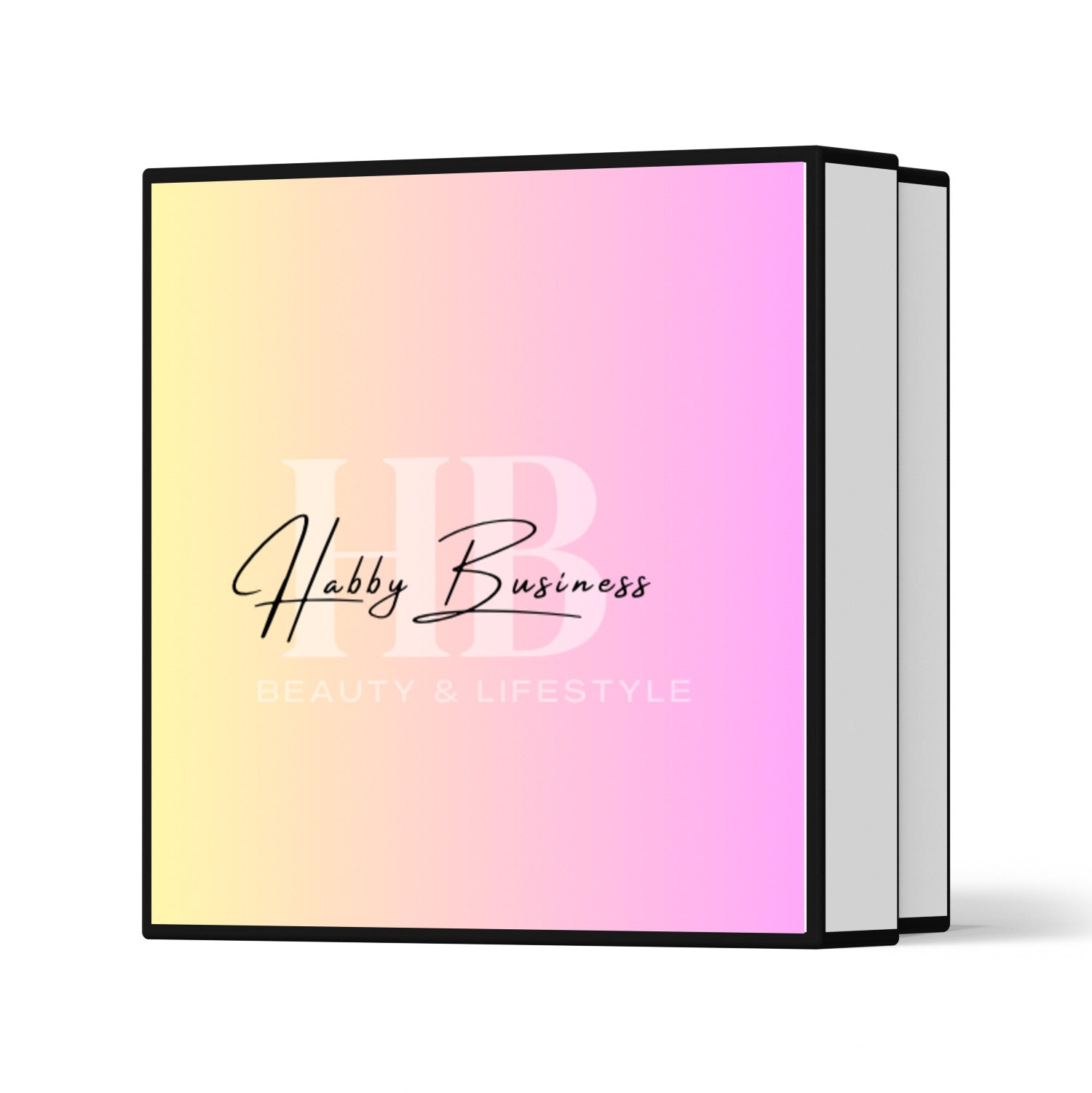 A beauty packaging using an all-white material with an additional black trim around the corners.