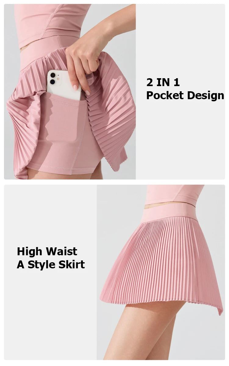 - Tennis Skirt with Shorts - Built-in shorts for coverage and freedom of movement