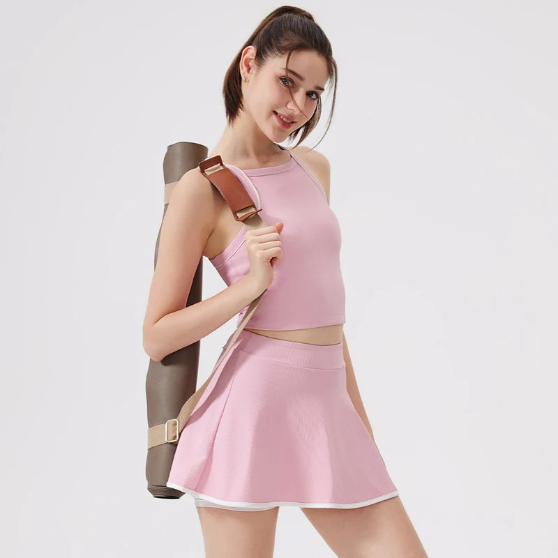 Women's Two-Piece Fitness Set - Yoga Top & Skort with Built-in Shorts