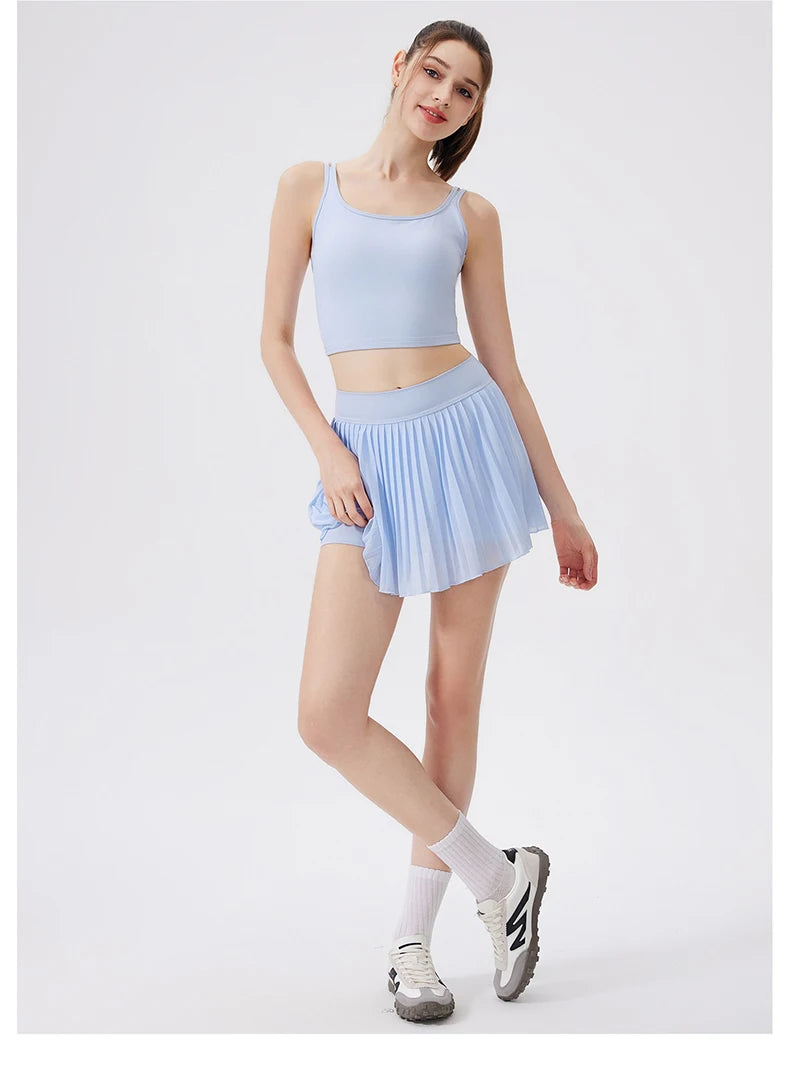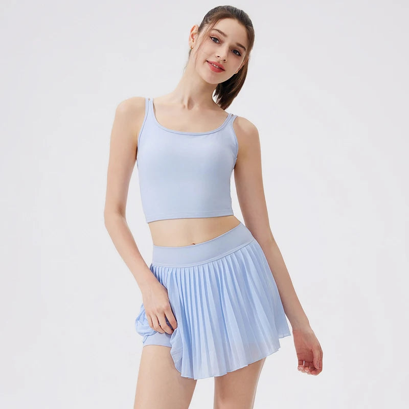 Women's Two-Piece Fitness Yoga Set - Summer Tennis Shorts & Top