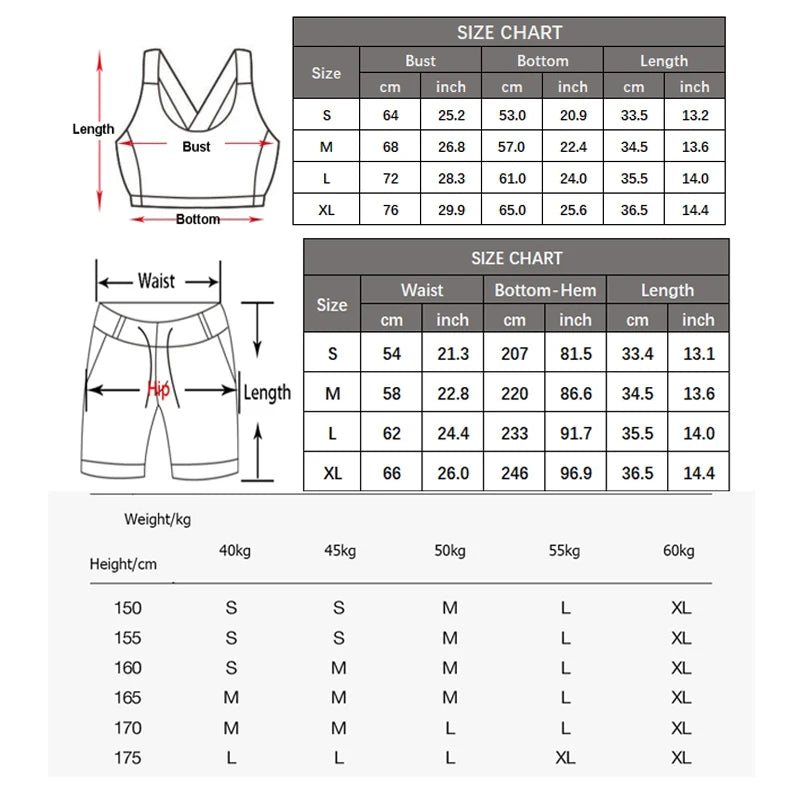 S: Bust 32-34", Waist 26-28", Hip 36-38"