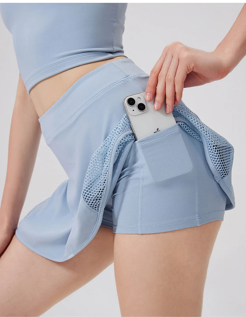 Elevate your active lifestyle with this versatile two-piece fitness set featuring a stylish golf skort, perfect for tennis, yoga, golf, and all your favourite workouts.