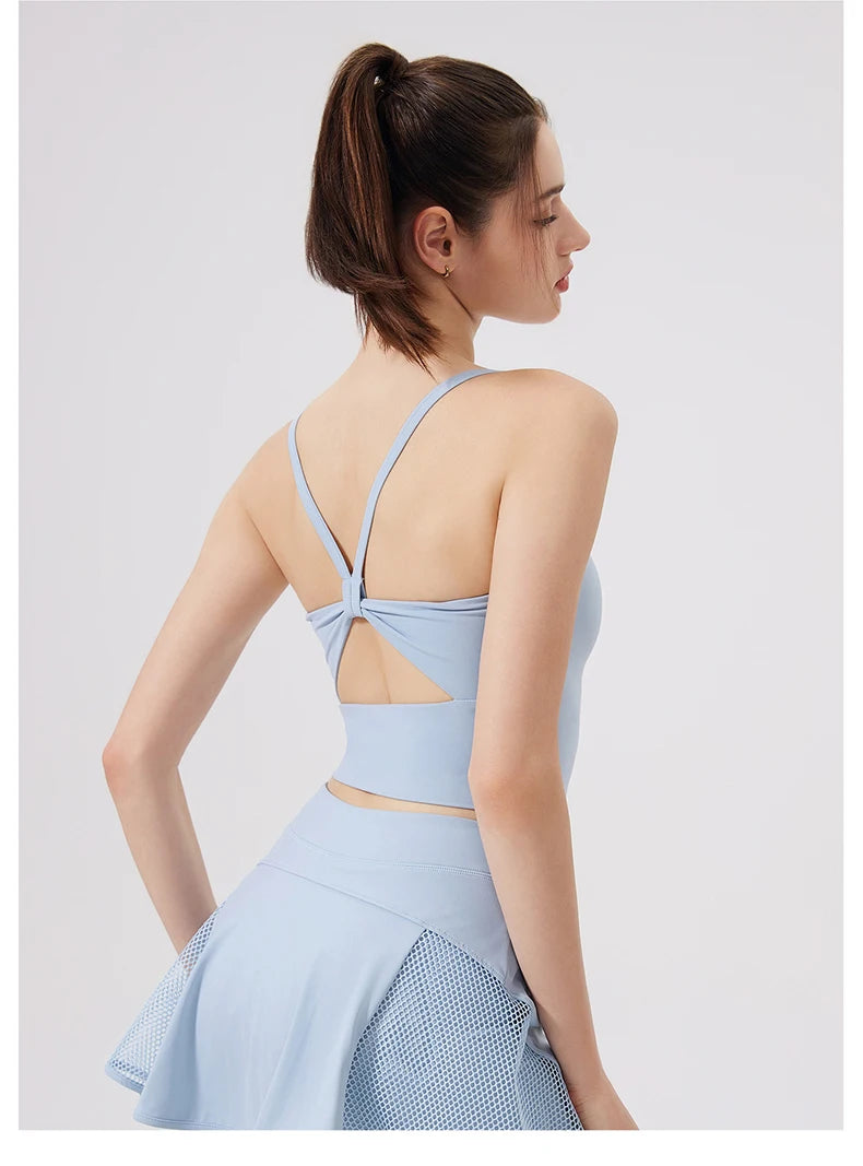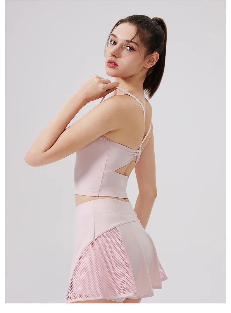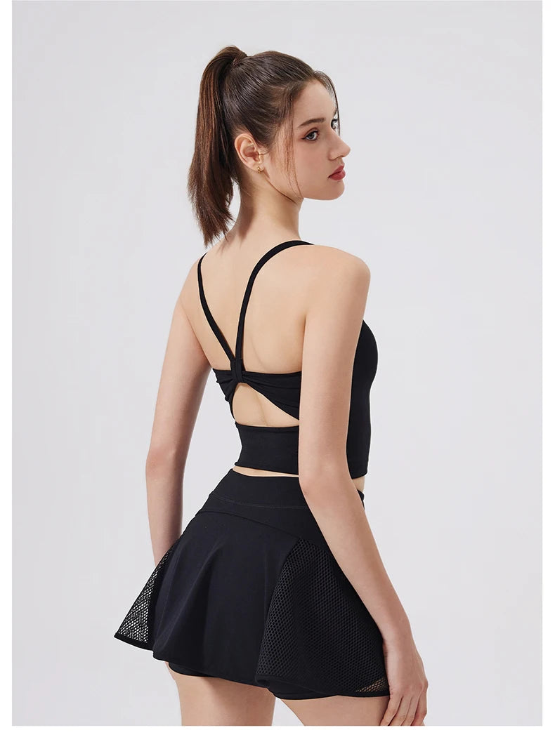 Women's Two-Piece Fitness Set with Golf Skort - Summer Tennis & Yoga Activewear