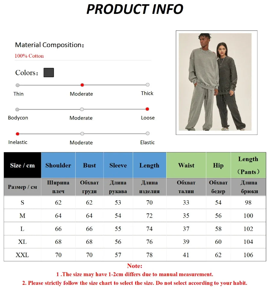 Unisex 100% Cotton Thin Round Neck Sweatshirt and Joggers Set