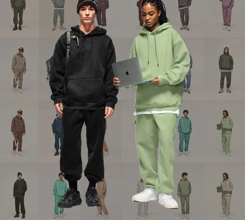 Unisex 350gsm Thick Velvet Tracksuit Matching Fleece Sweatpants Set