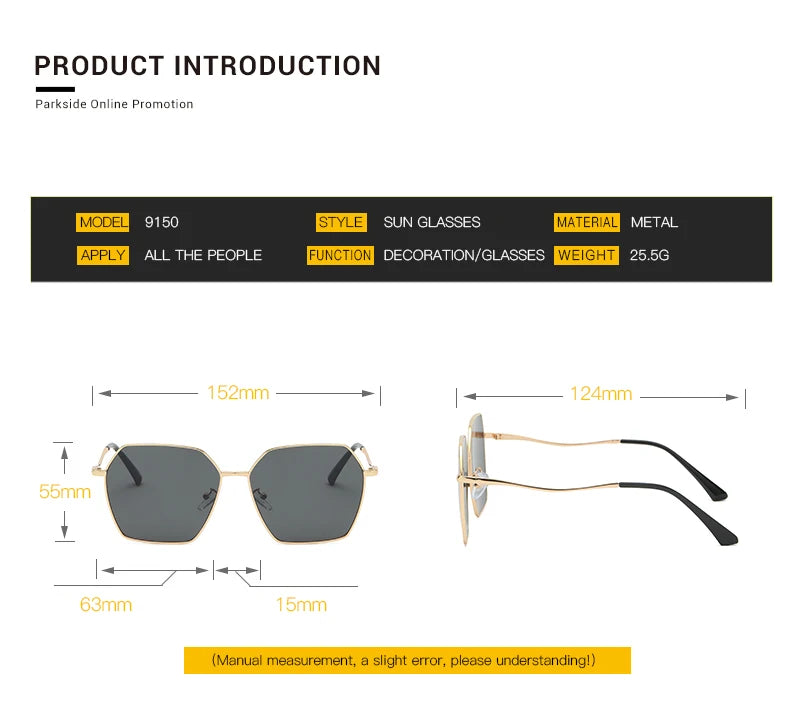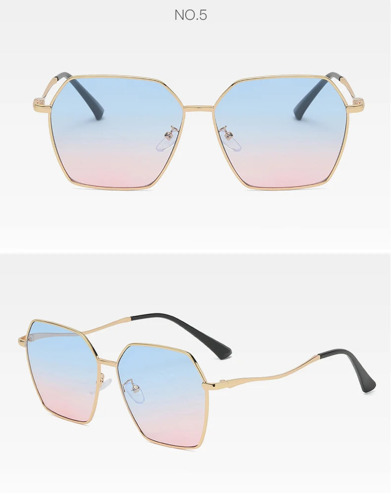 Unisex Large Metal Mirror Square Women's Sunglasses UV400