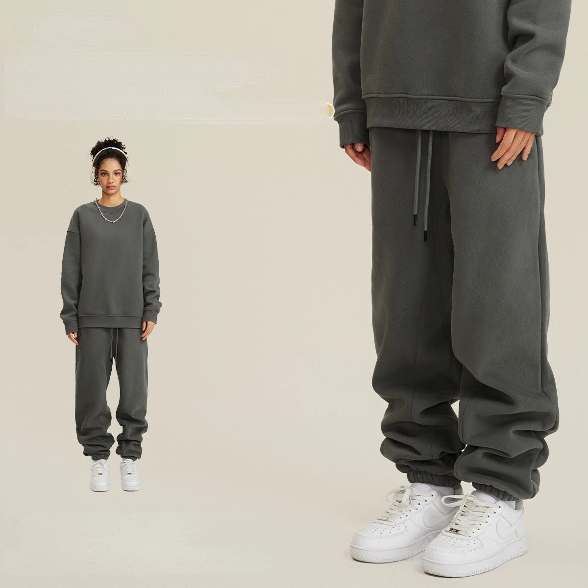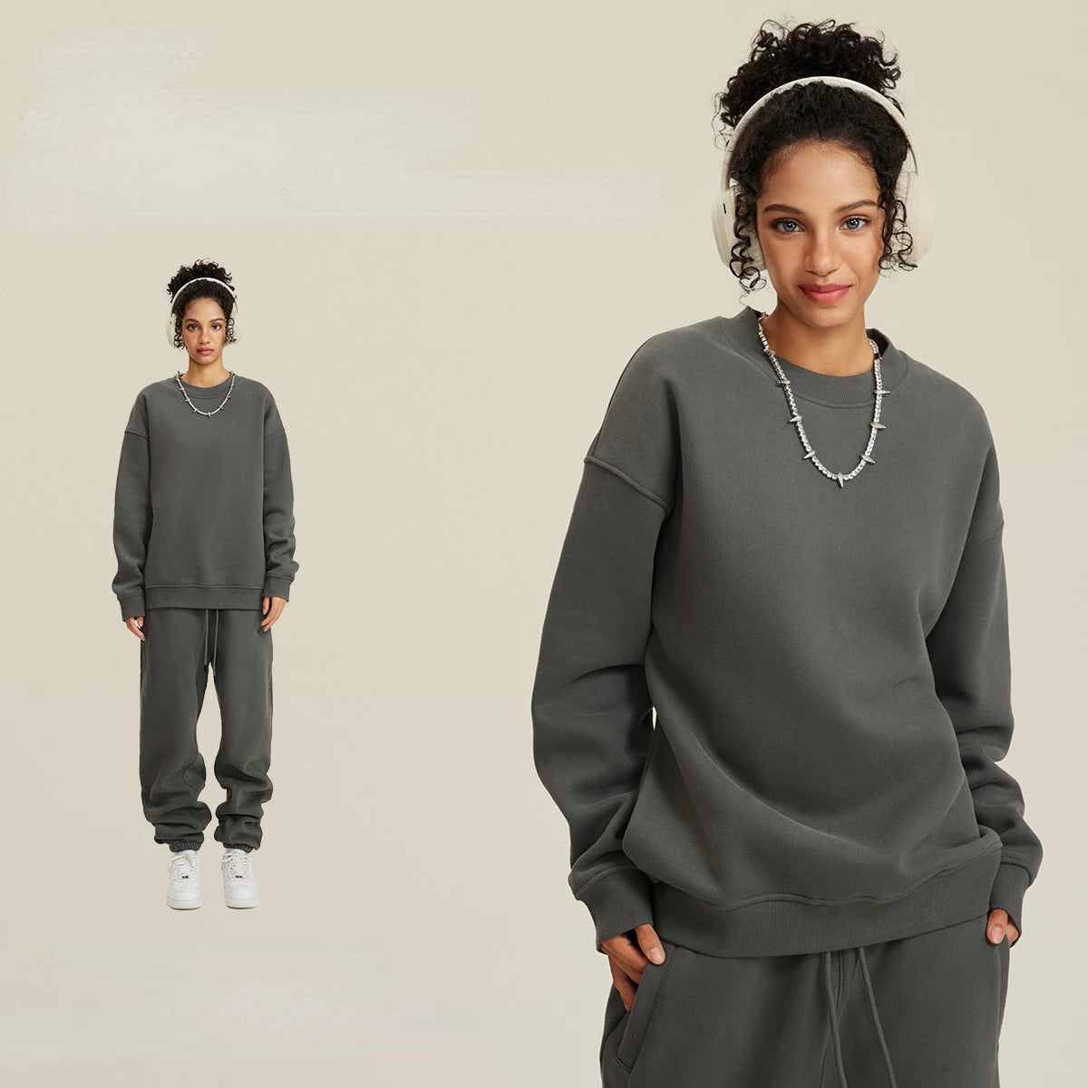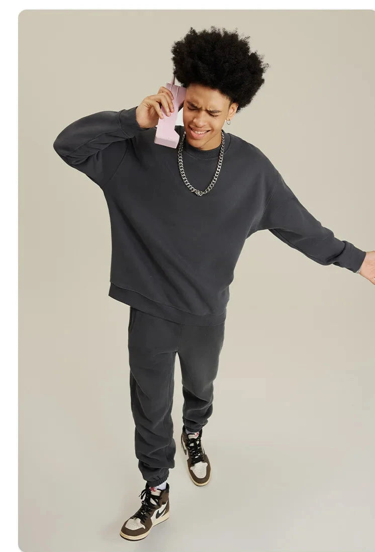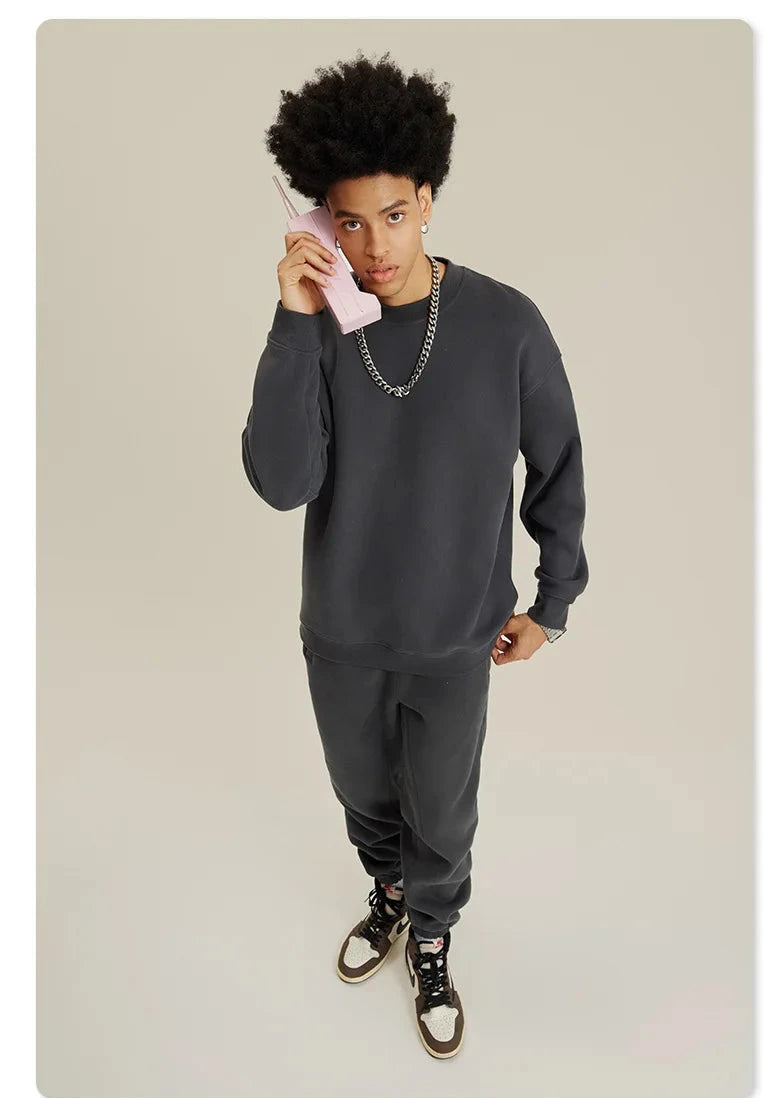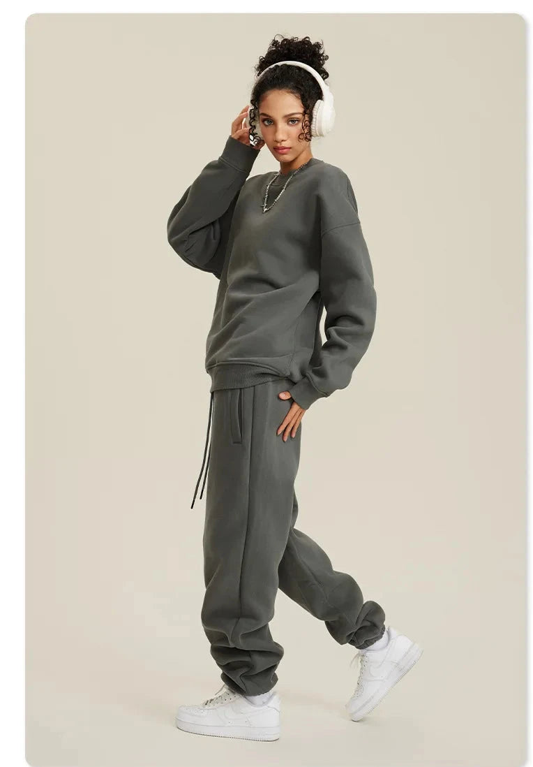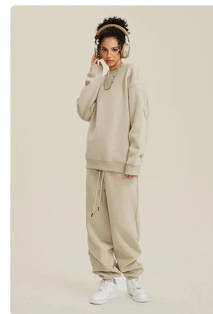 Unisex Round Neck Oversized Sweatshirt and Joggers Set