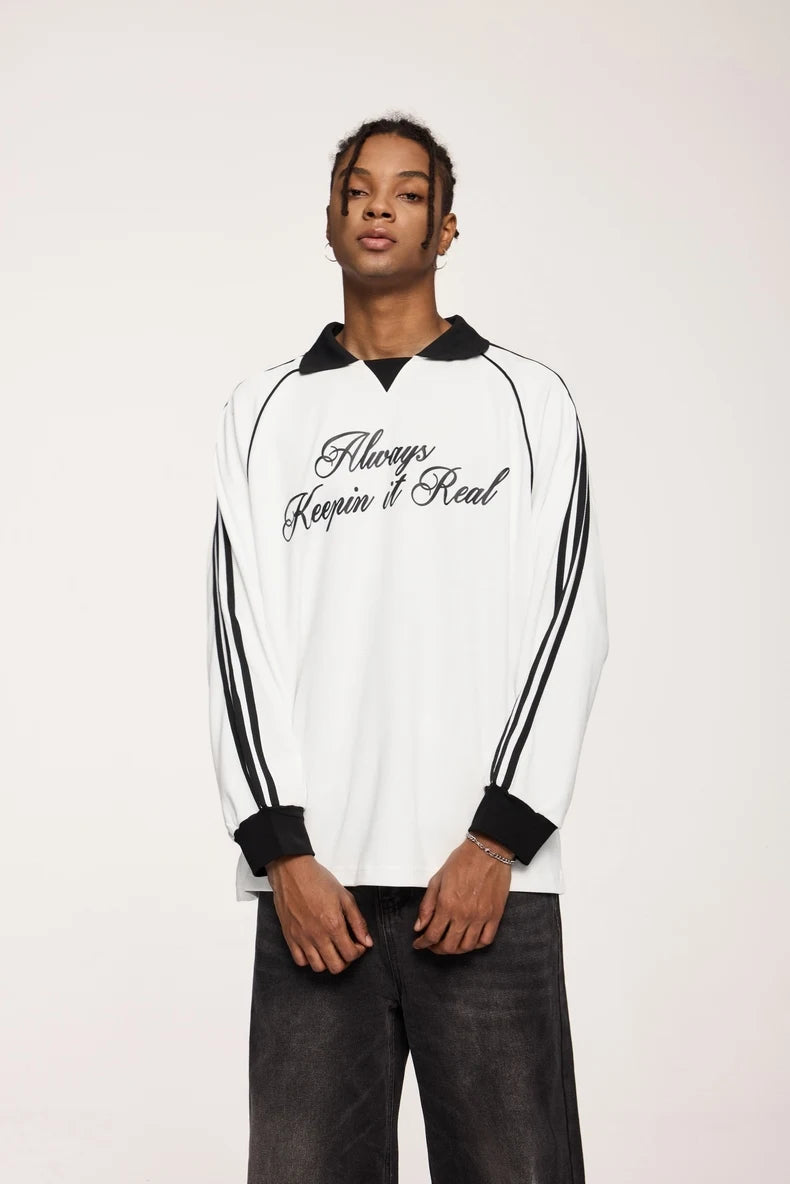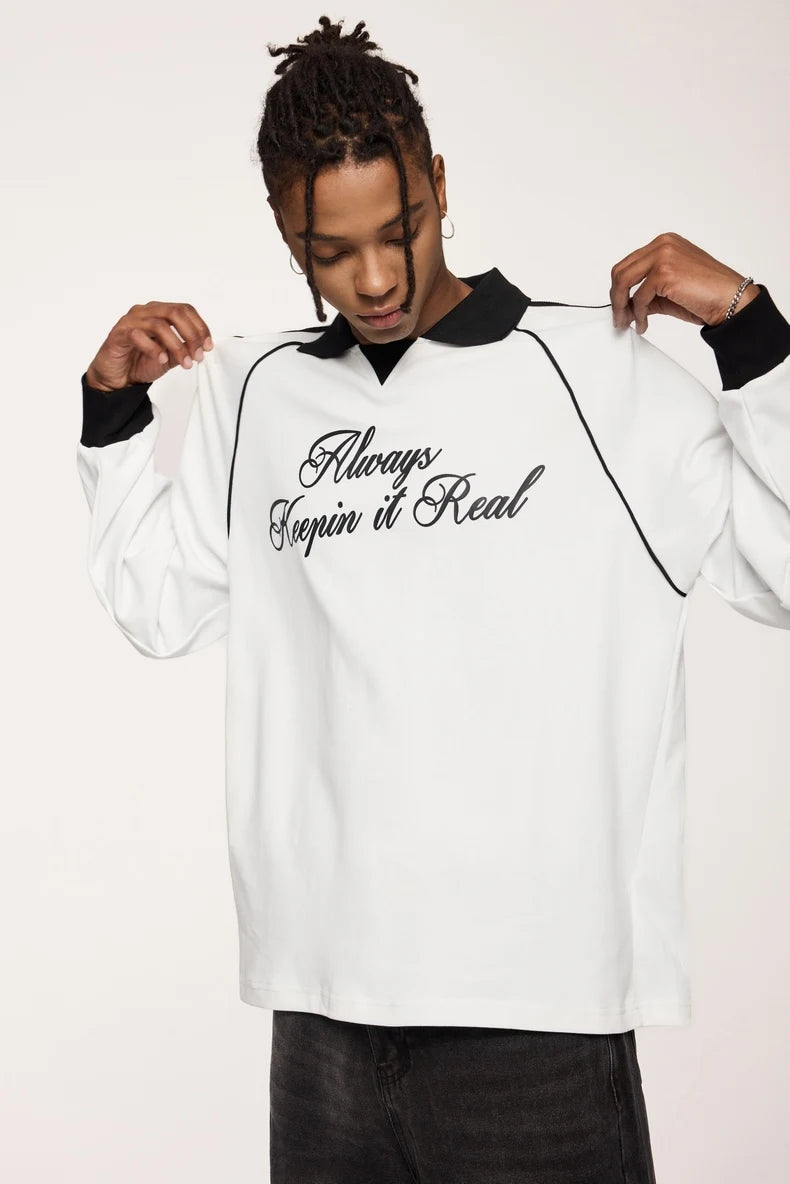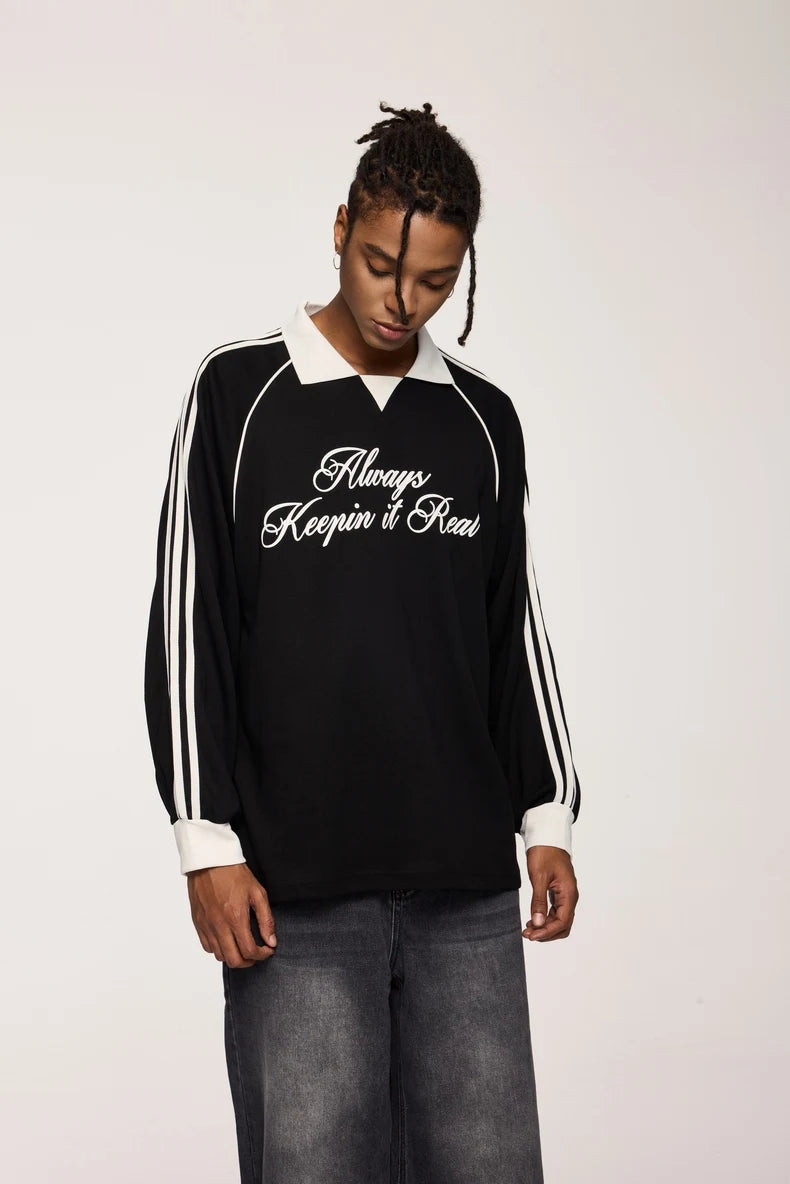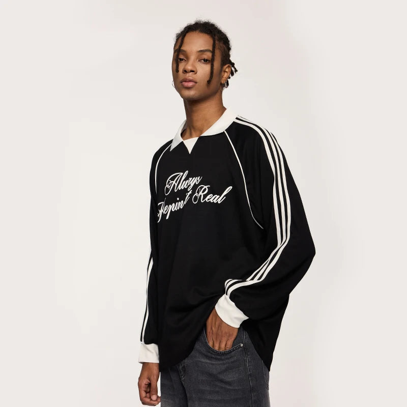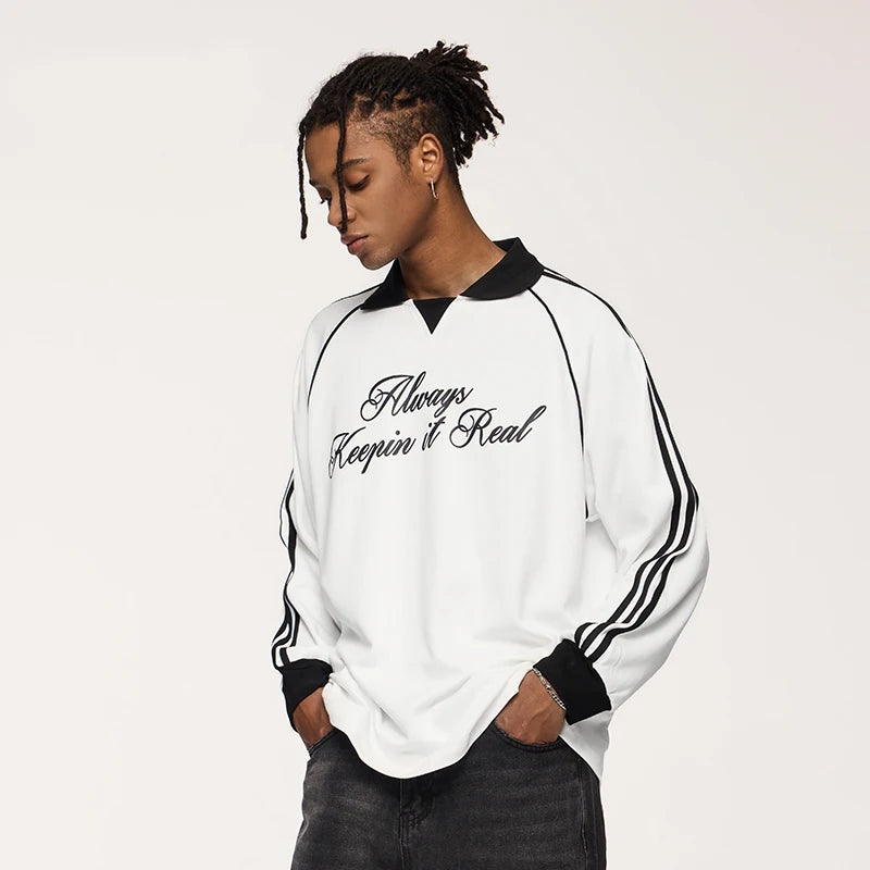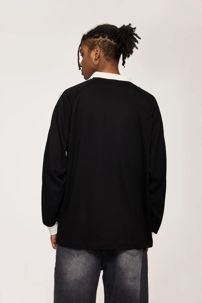 Unisex Streetwear POLO Trendy Oversized Colourblock Long-sleeved T-Shirt